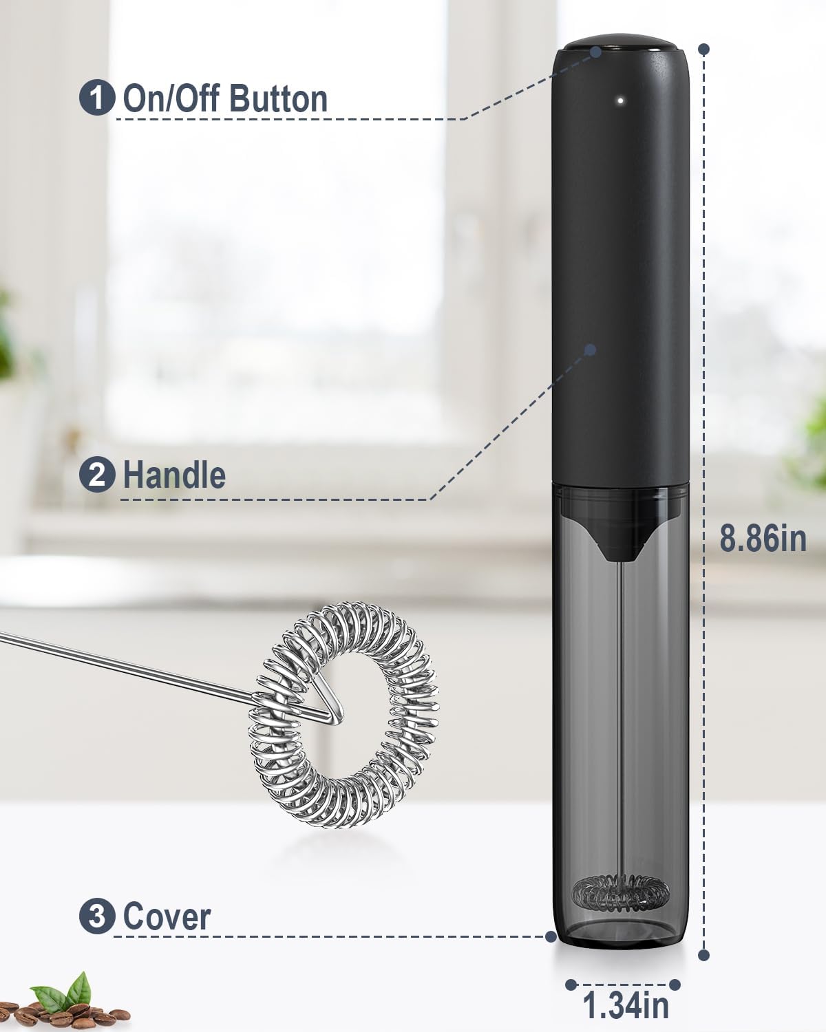 - Easy to Use and Clean: Simply press the button to start frothing and effortlessly create rich, creamy foam. Cleanup is a breeze - just put the stainless-steel whisk under water and turn it on.