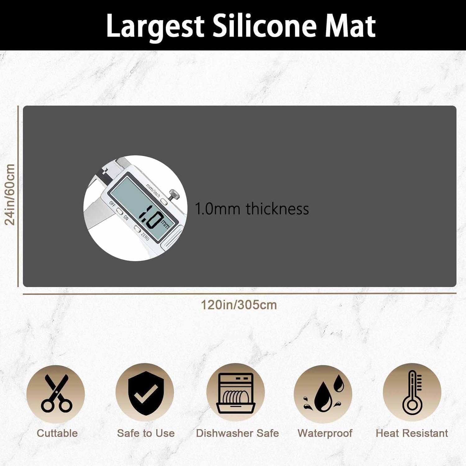 - Cut Size You Want: Extra large silicone mat can cover your entire island, dining table, desk, or worktop. And it can be cut with scissors, you can cut as many pieces as you need. It can be used as glass stove top mat, table mat, pastry mat, place mat, heat resistant mat, craft mat, nail mat,painting mat, clay mat, work mat or pet feeding mat etc.