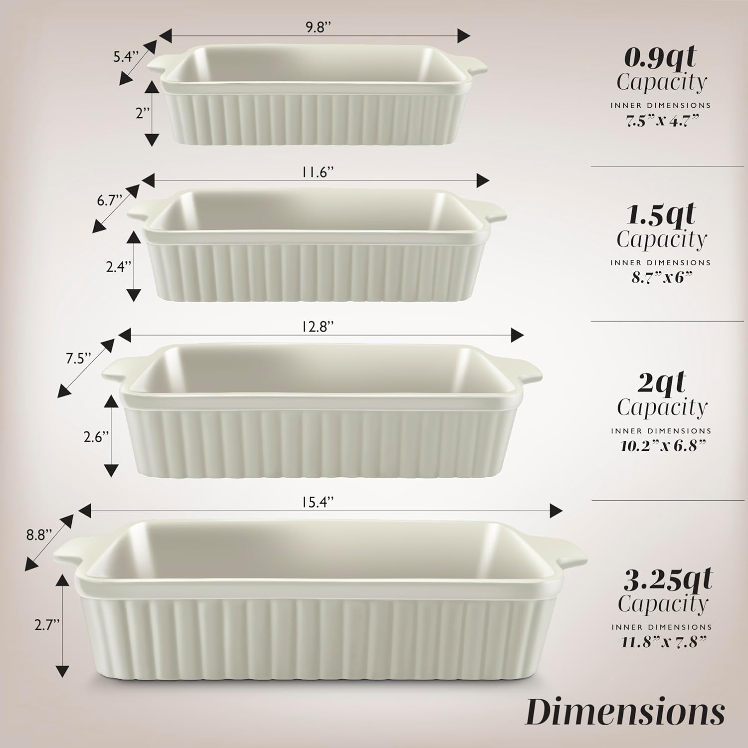 - Versatile 4-Piece Ceramic Casserole Dish Set β Includes 4 baking dishes in assorted sizes, perfect for casseroles, lasagna, roasted veggies, baked pasta, and desserts. Ideal for family dinners, potlucks, and everyday baking.