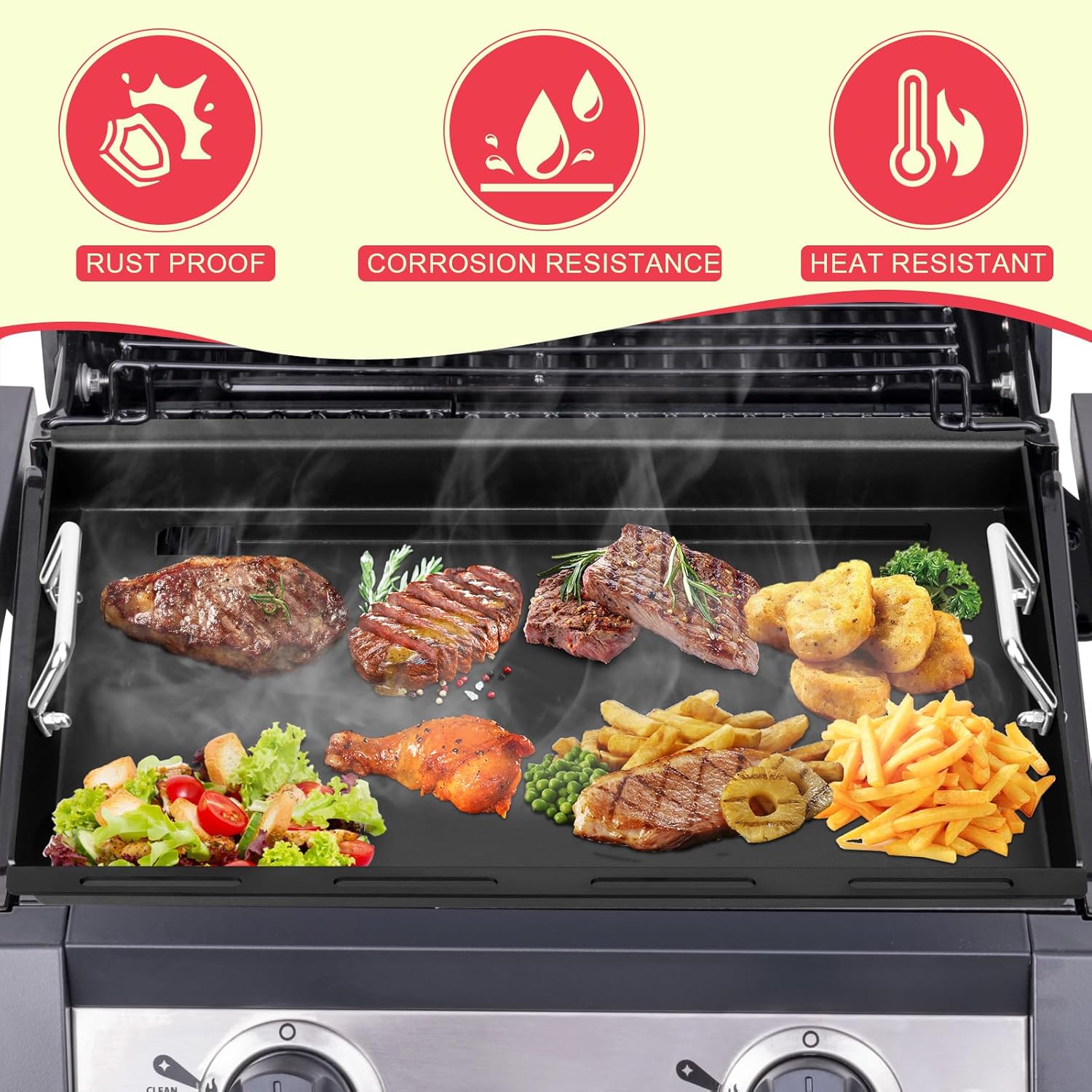 - Built to Last & Cook Like a Pro: Why settle for warped, uneven griddles? Crafted from premium 4mm carbon steel, this heavy-duty plate distributes heat evenly and handles high-heat searing, pancakes, or veggies without warping. Its rugged design resists rust and scratches, unlike thin competitors. Whether you're flipping burgers or stir-frying, this flat griddle top plate for char broil replacement parts 2 burner griddle insert outperforms Cast iron with faster preheating