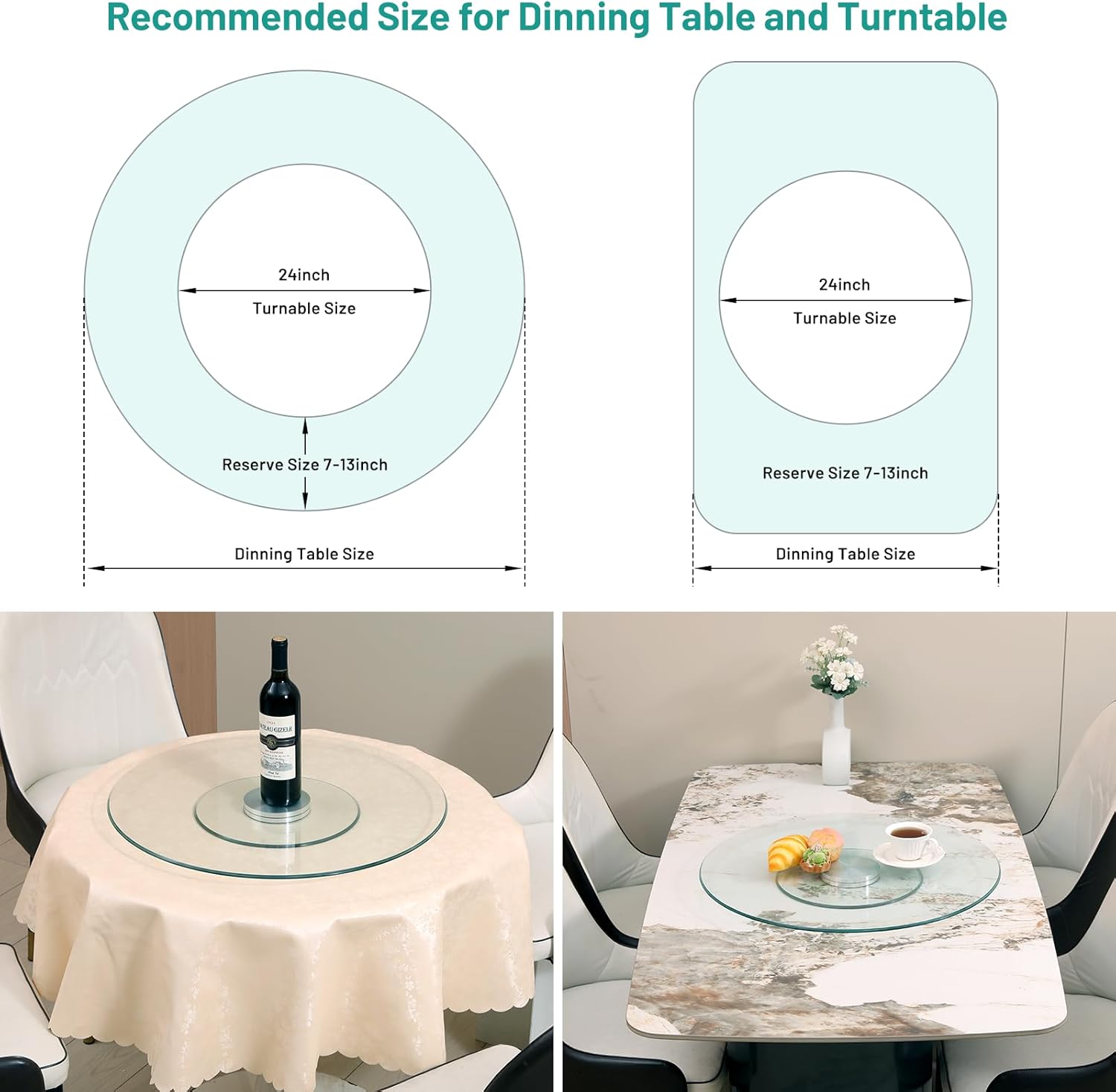 - Generous & Versatile Surface: With a 30-inch diameter, this Lazy Susan provides ample space for a variety of dishes, decorative items, or large cakes. It fits tables ranging from 50 to 60 inches—ideal for multiple uses.