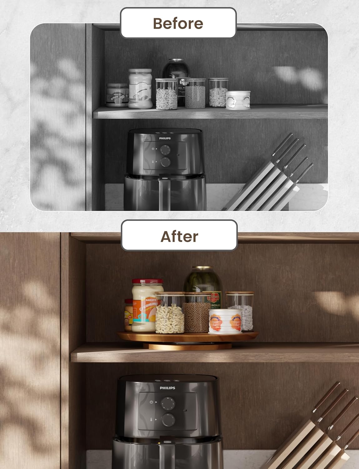 - Spacious & Versatile Size: With a generous 13-inch diameter, this large Lazy Susan tray offers ample space, making it ideal as a spice rack, pantry organizer, or stylish charcuterie board. Perfect for kitchen countertops, dinner tables, or pantry shelves