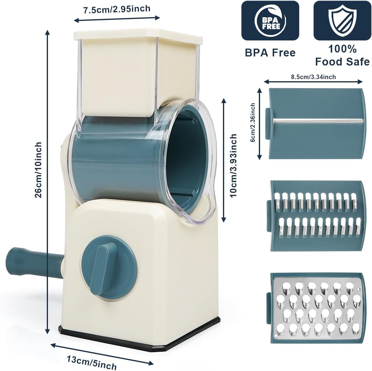 - Versatile Cheese Shredding: The handheld rotary cheese shredder features interchangeable drum blades, allowing you to effortlessly create perfectly shredded cheese, whether it's fine, medium, or coarse, to suit all your culinary needs.