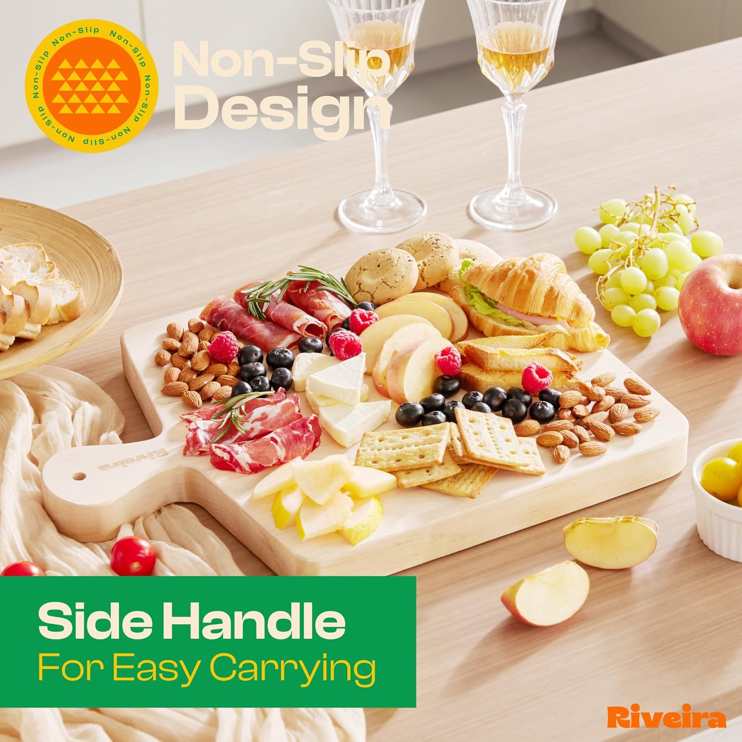 - Premium Crafted Maple — Take a detour from traditional kitchen aesthetics with this maple wood board crafted from 100% natural maple. Beyond being an unconventional and eco-friendly choice, the chopping board wood proudly showcases the environment friendly and organic maple. This wood cutting boards for kitchen counter adds an unexpected touch of confidence and style to your once-orderly culinary space. Riviera's wooden chopping boards for kitchen will be there for you for many years to come.
