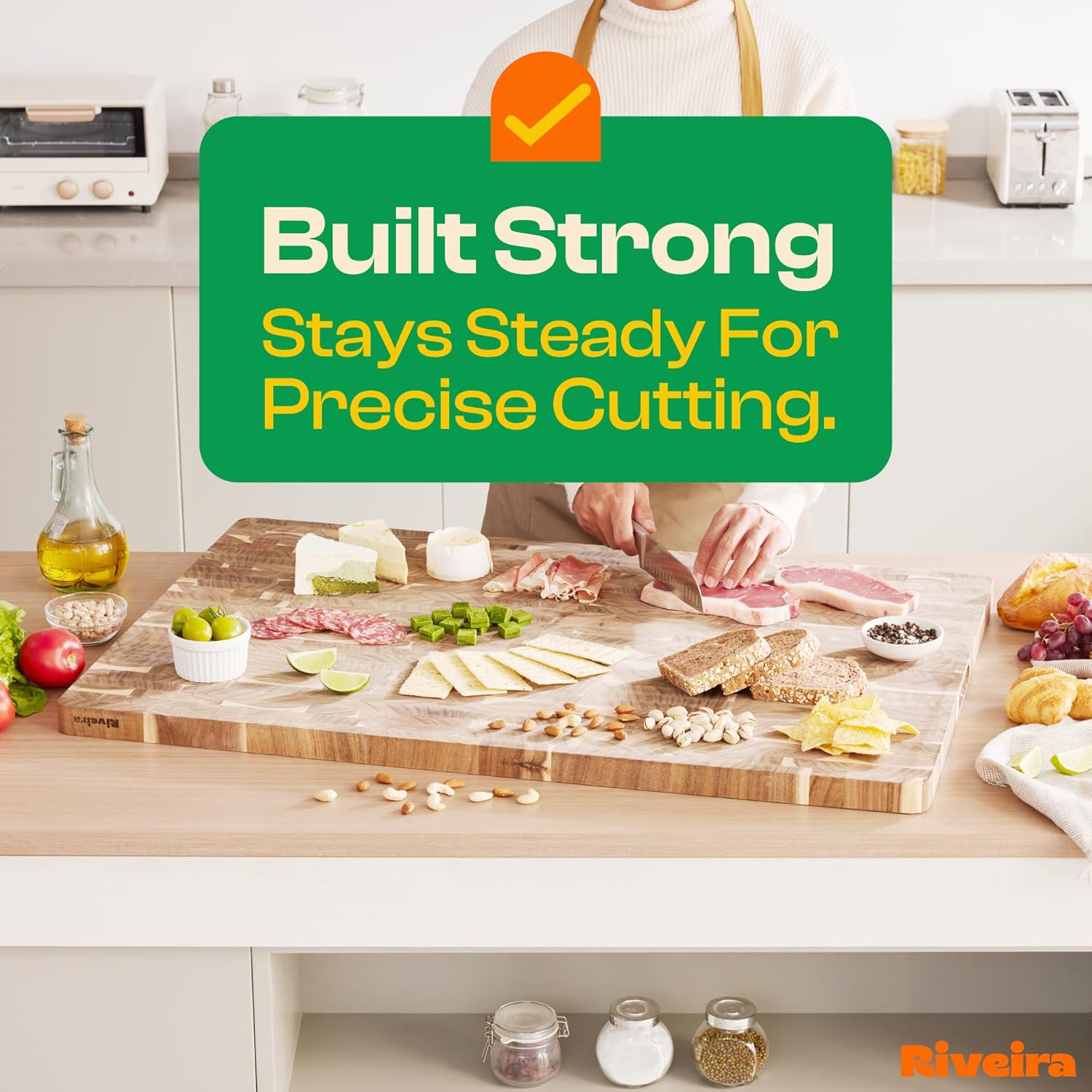 Riveira Acacia Wood Cutting Board – Gourmet Acacia Grandeur: 36 x 24 Wooden Cutting Board – Natural Wooden Cutting Boards For Kitchen Decorative – Innovative Juice Grooves Acacia Wooden Chopping Board