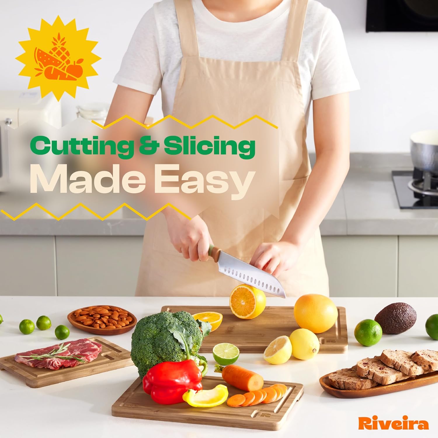 Riveira Brown Bamboo Wood Cutting Board – Gourmet Bamboo Grandeur: 36 x 24 Wooden Cutting Board – Wooden Cutting Boards For Kitchen Decorative – Innovative Juice Grooves Wooden Chopping Board
