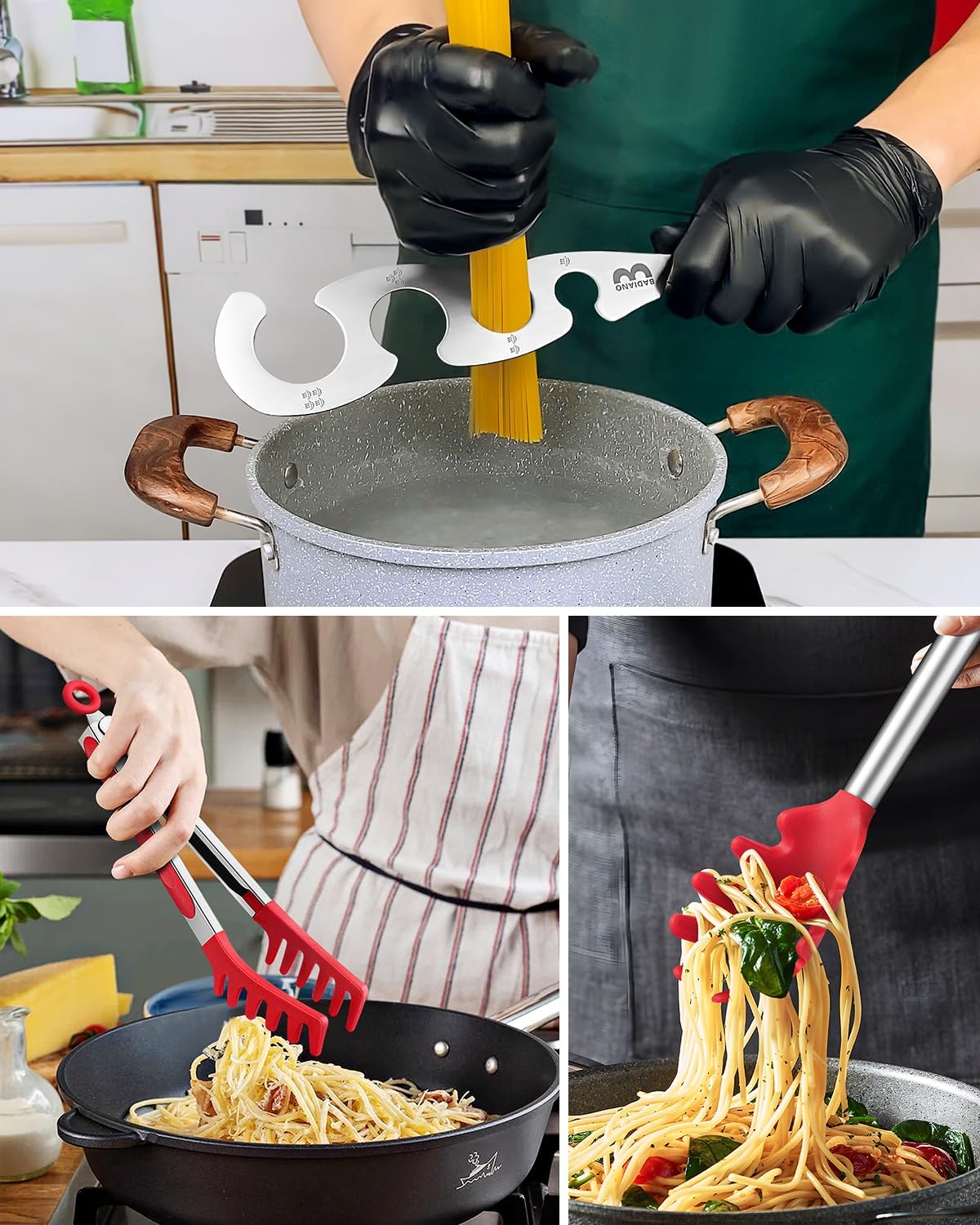 - Silicone Pasta Tong: BPA-free food-grade silicone ensures safety. Tooth-shaped heads make spaghetti pickup effortless