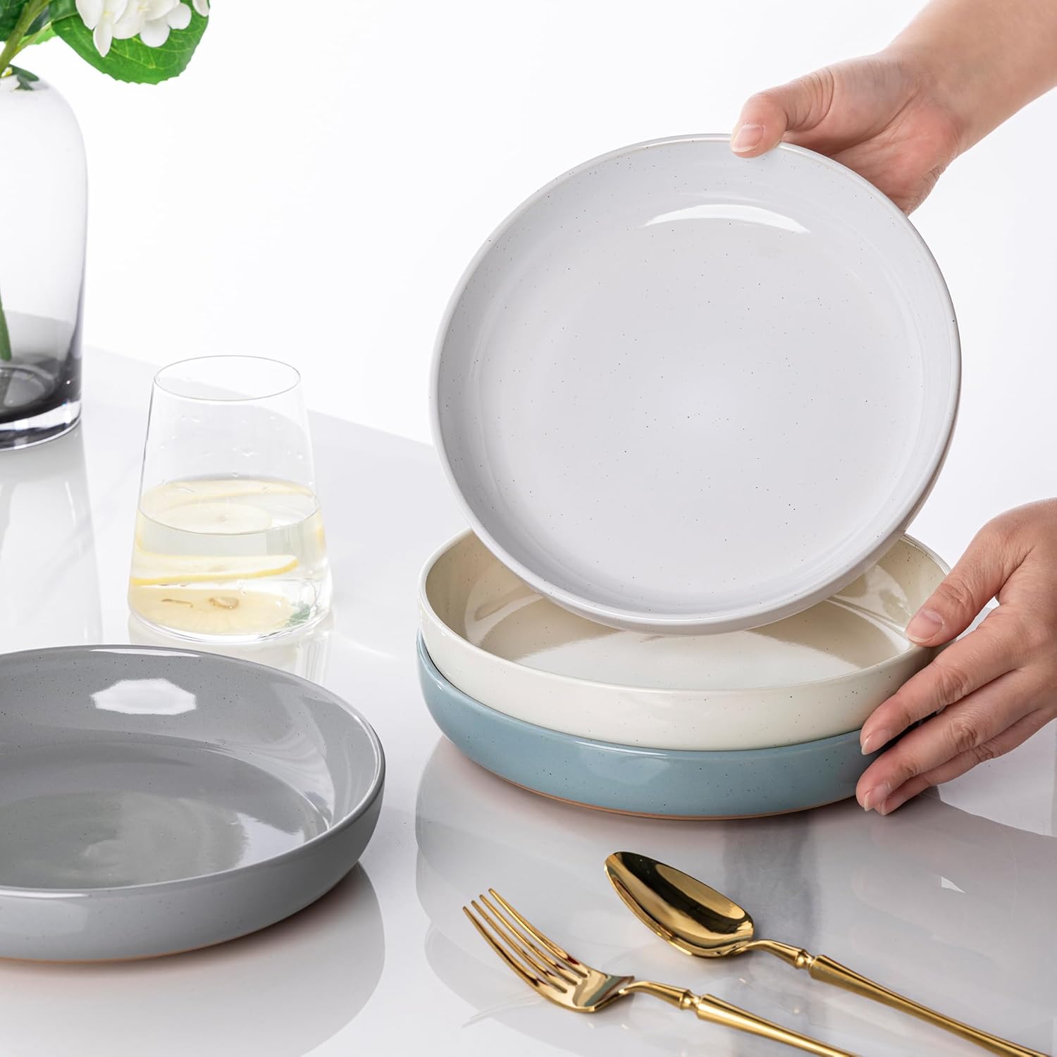 - UNIQUE DESIGN WITH WAVE RIM:These Pasta Bowls are designed by professional artist,The beautiful speckled glaze feels comfortably, It looks fantastic on the table and brightens up your kitchen. It perfect for daily using and special occasion.