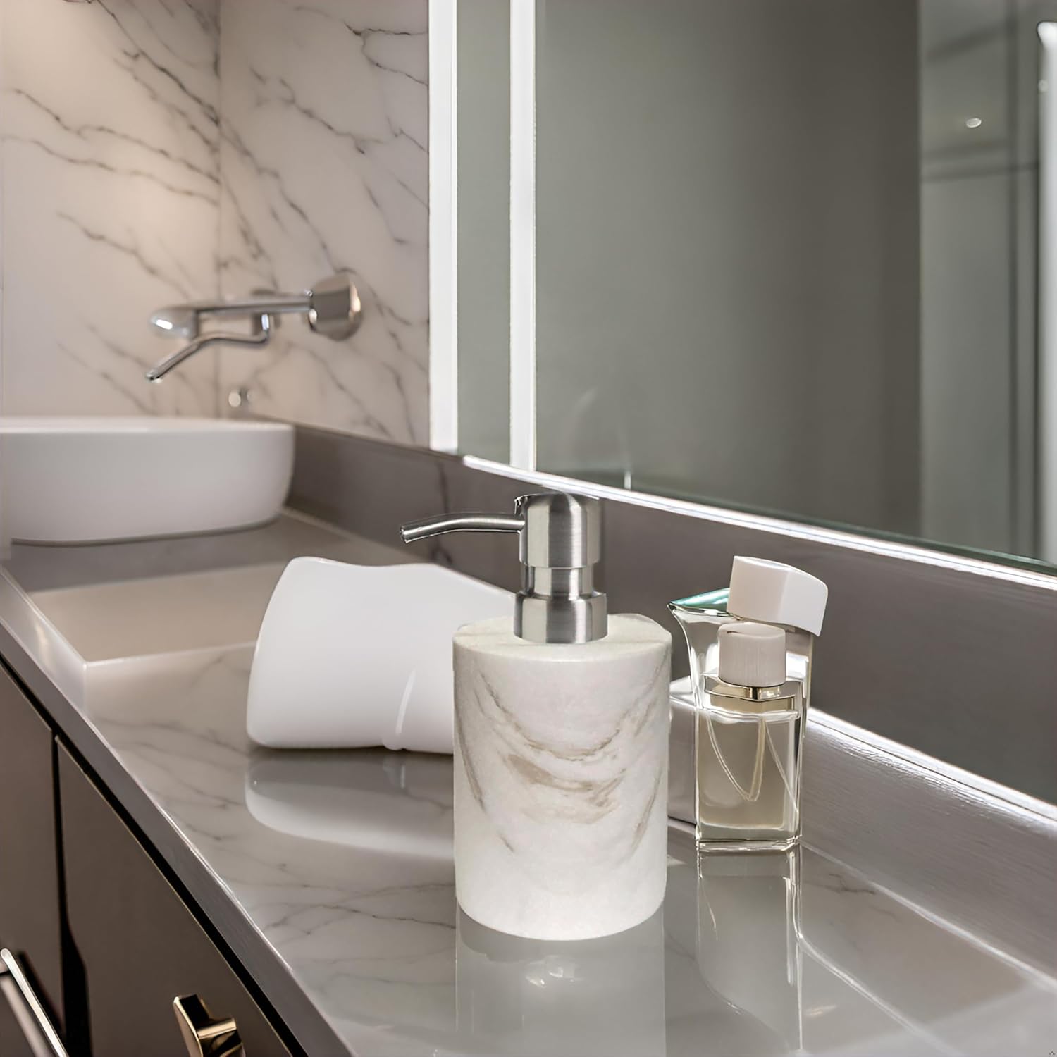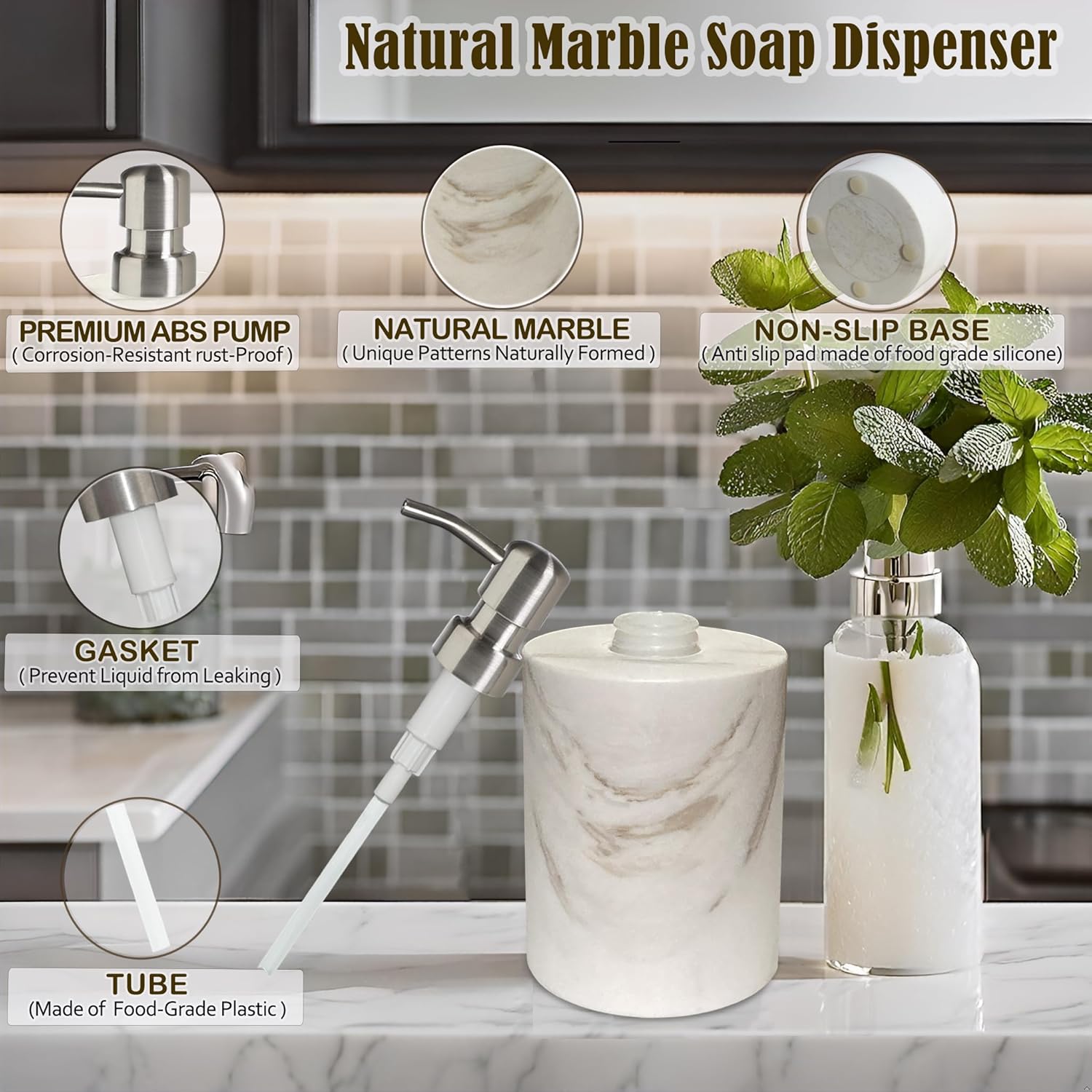 - Versatile: Versatile in your daily life, this white marble hand soap dispenser is perfect for dispensing lotions, essential oils, shampoos, body washes and more, combining convenience and practicality.