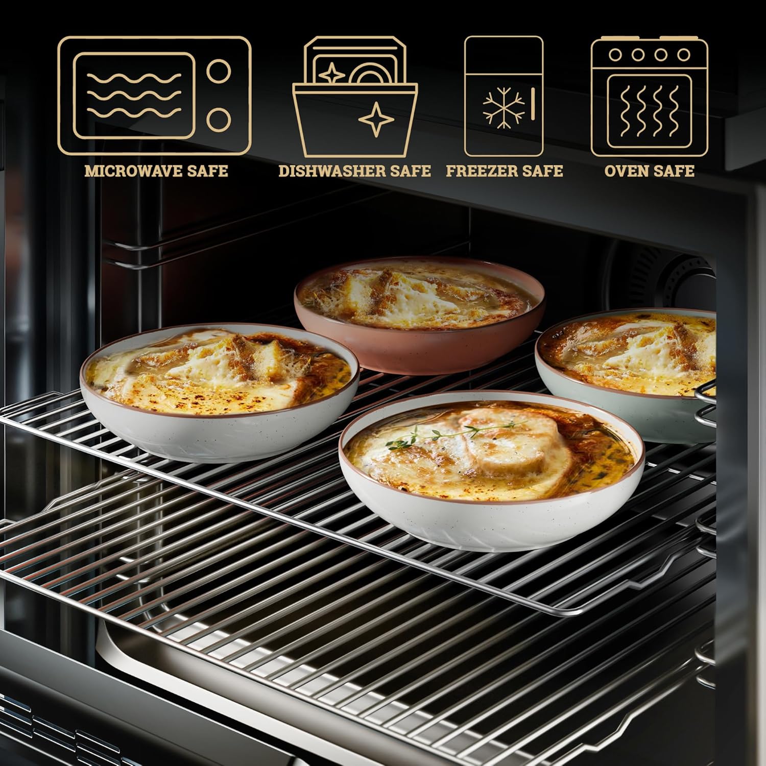 - SAFE FOR OVEN, MICROWAVE, DISHWASHER - These oven safe bowls are temperature resistant, meaning they can be put in the microwave, oven, dishwasher, fridge and freezer.