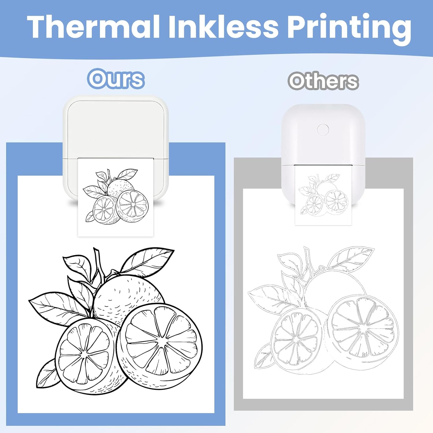 - 【Lightweight & Portable】Our mini printer is super compact and light, measuring just 3.15 x 3.15 x 1.77 inches—perfect for students, professionals, and DIY enthusiasts. It slips easily into your pocket or bag, so you can print study notes, labels, or to-do lists wherever you are.
