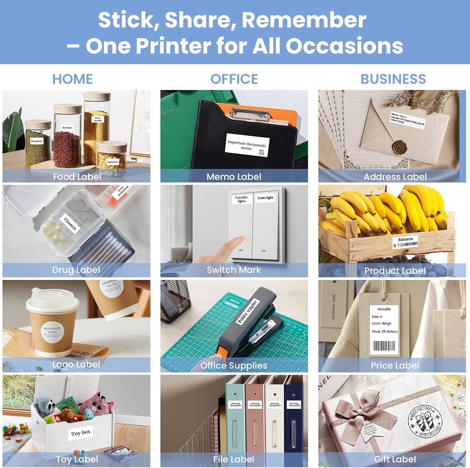 - 【Just Clear Prints】Our label printer is equipped with high-speed chips and 203 DPI resolution, it delivers clear and sharp print quality.【Inkless Printing】Our sticker printer is a thermal printer that requires no ink, making it effortless and convenient to use—say goodbye to messy cartridges and supply costs.