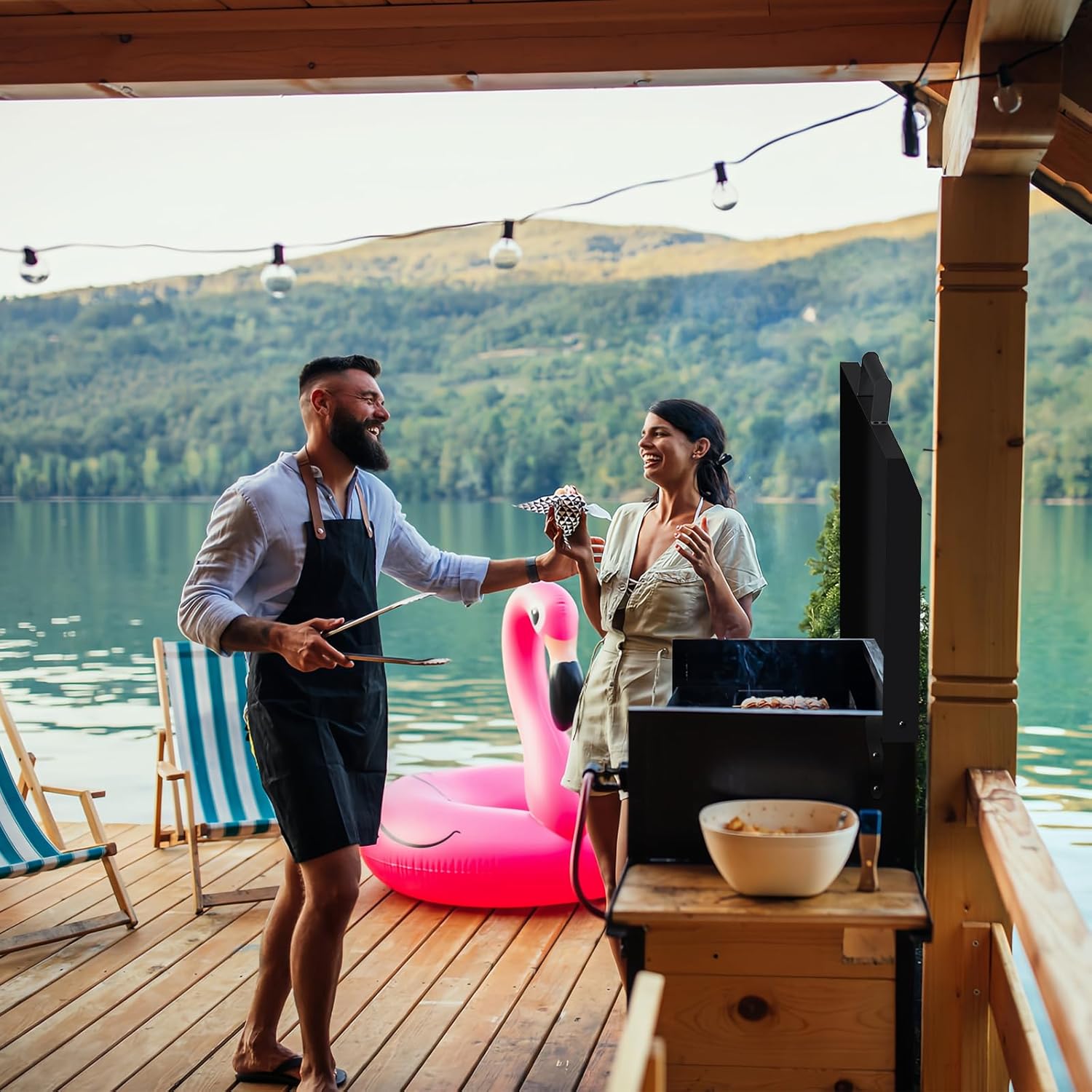 - Multi-functional griddle lid: When cooking, the griddle cover keeps out the wind as well as helping to retain heat and reduce cooking time. When not in use, the rust proof and waterproof powder coating prevents the grill from dust and the elements