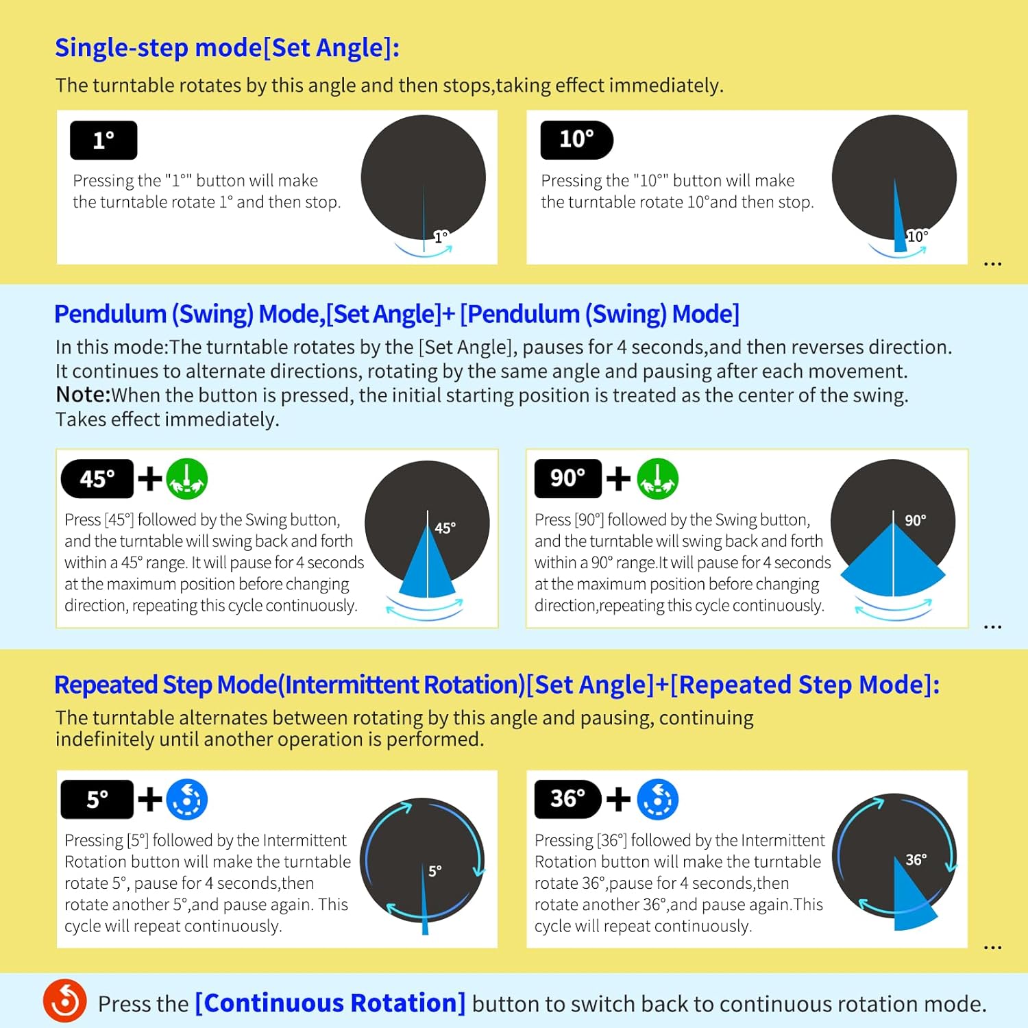 - 【This Rotating platform includes a Professional Flagship Remote Controller】:Precise angle settings and user-friendly combination key design enable support for a wider range of applications. Support: Set the current position as the origin point (used in conjunction with the "Return to Origin" button). Support: Save the current settings to the turntable's internal flash. More versatile angle buttons and mode button combinations provide greater flexibility for various applications