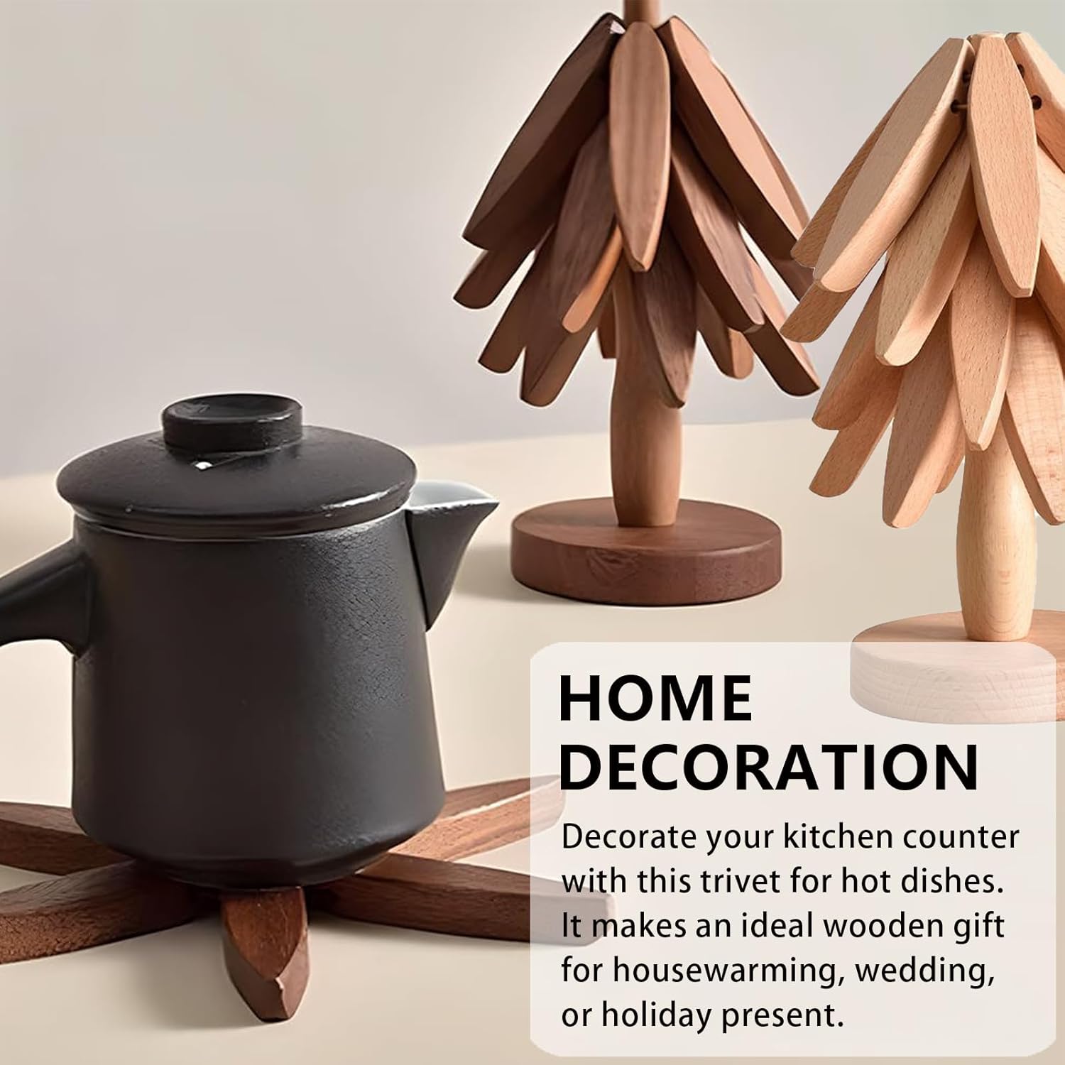 - Perfect Gift for Any Occasion:Looking for a thoughtful and practical gift? Our Wooden Trivets set is an ideal choice for housewarmings, weddings, birthdays, or holidays. Packaged in a stylish and eco-friendly box, these trivets are ready to be gifted to your loved ones. Whether they’re seasoned chefs or just starting their culinary journey, they’ll appreciate the blend of functionality and elegance that these trivets bring to their kitchen.