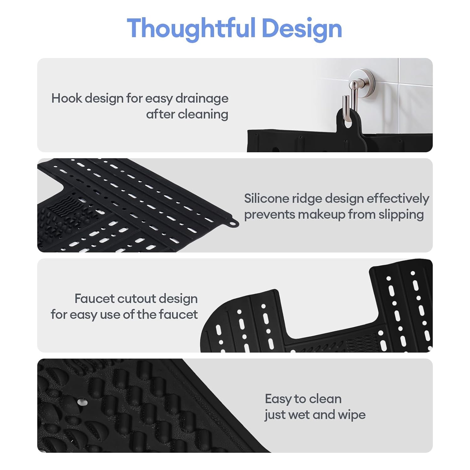 IeBilif Sink Cover for Counter Space, Foldable Bathroom Sink Covers, Makeup Organizer Mat Space Saver with Hanging Loop, Silicone Makeup Brush Cleaner Mat for Bathroom(Black)