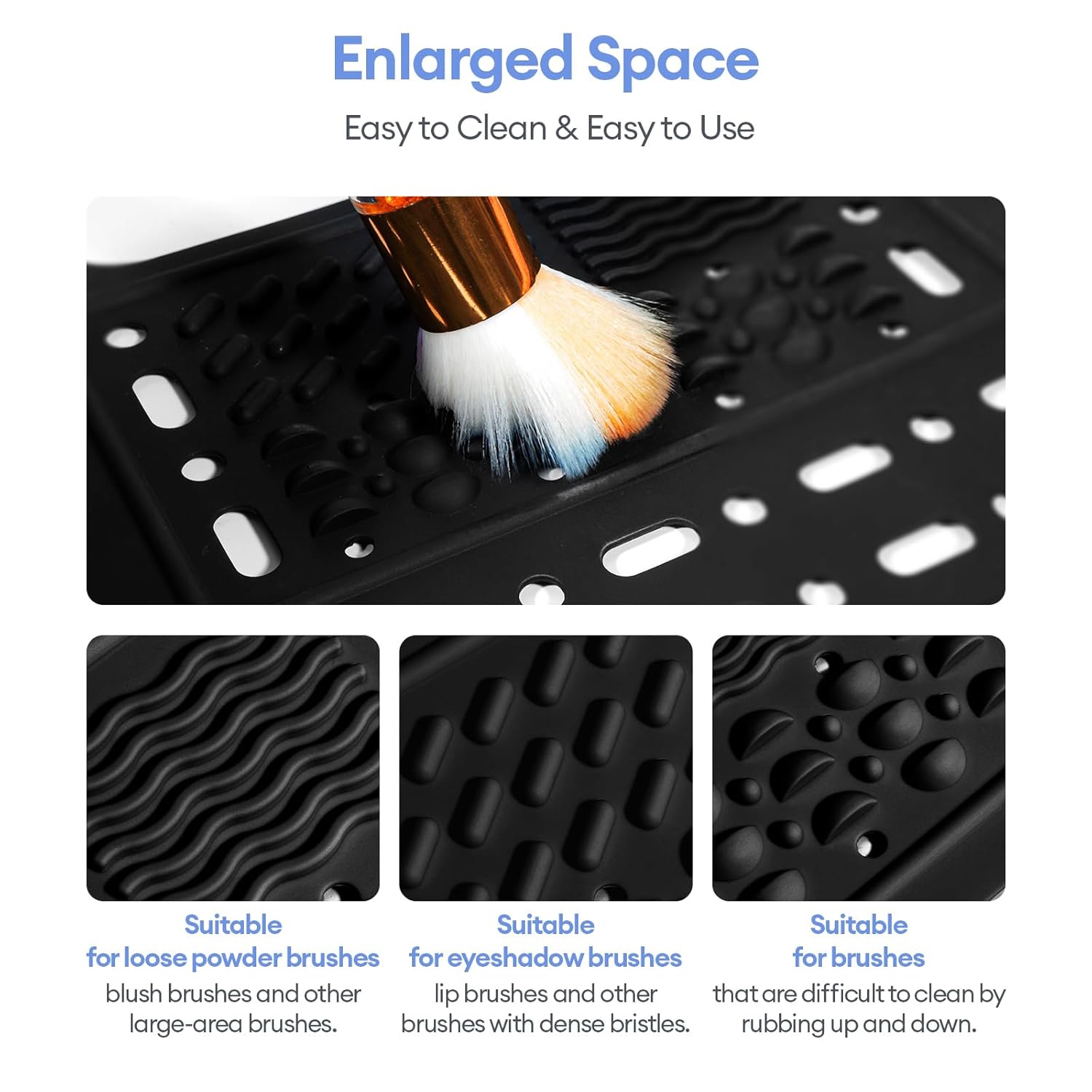 - Easy to clean and easy to use: Our bathroom sink mat has 3 different texture designs on the brush washing area, which effectively helps you remove makeup residue with different brushes, clean without hurting the bristles, and wash and dry in one. It is easy to wipe clean and towel dry after use to prevent water spots, and it dries quickly.
