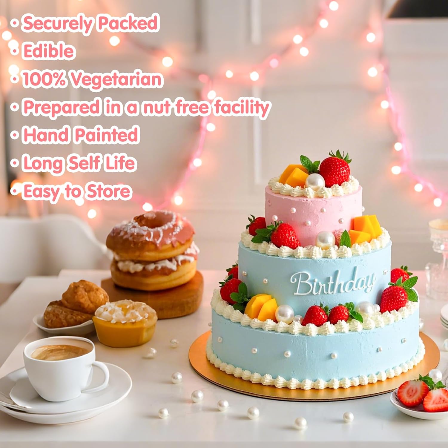 - White Sprinkles with food-grade raw materials: Preservative Free,Nut Free, Dairy Free, Chemical Free,Soy Free,Non-GMO.Produced using food-safe standards, the process does not come into contact with allergenic substances and uses Tamper-proof food label
