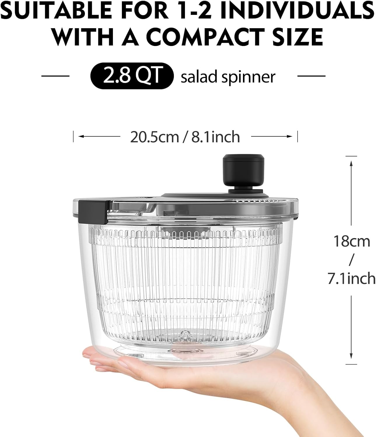 - Convenient stop-button handle: The handle is designed with a convenient stop button—simply press down to halt the spinning basket instantly. This feature gives you full control over the spinning process, allowing you to stop whenever your greens have reached the perfect dryness