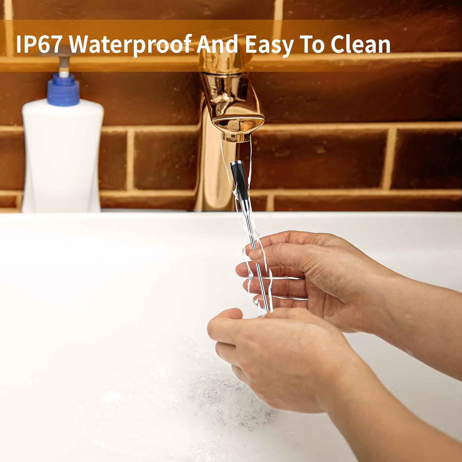 - Extra-Wide Temperature Range: Whether you’re cooking delicate meats or high-temperature BBQ, our thermometer delivers accurate readings across a wide internal temperature range from -4°F to 212°F, and the ambient temp can withstand external temperatures up to 1000°F.