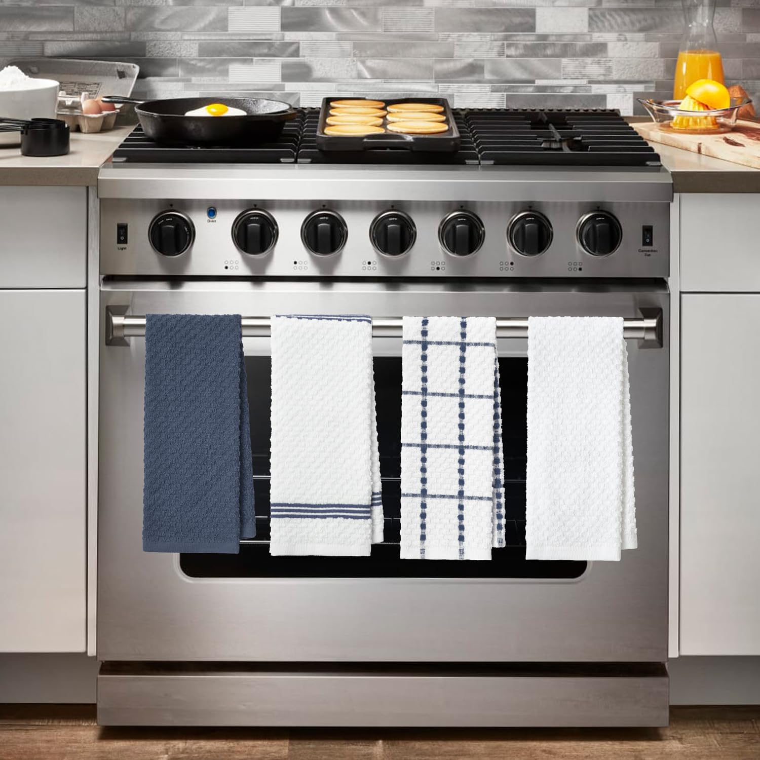 - VALUE PACK: Collection includes 4 cotton kitchen towels available in a variety of colors to coordinate with any kitchen dรฉcor. Measures 15 in x 25 in.