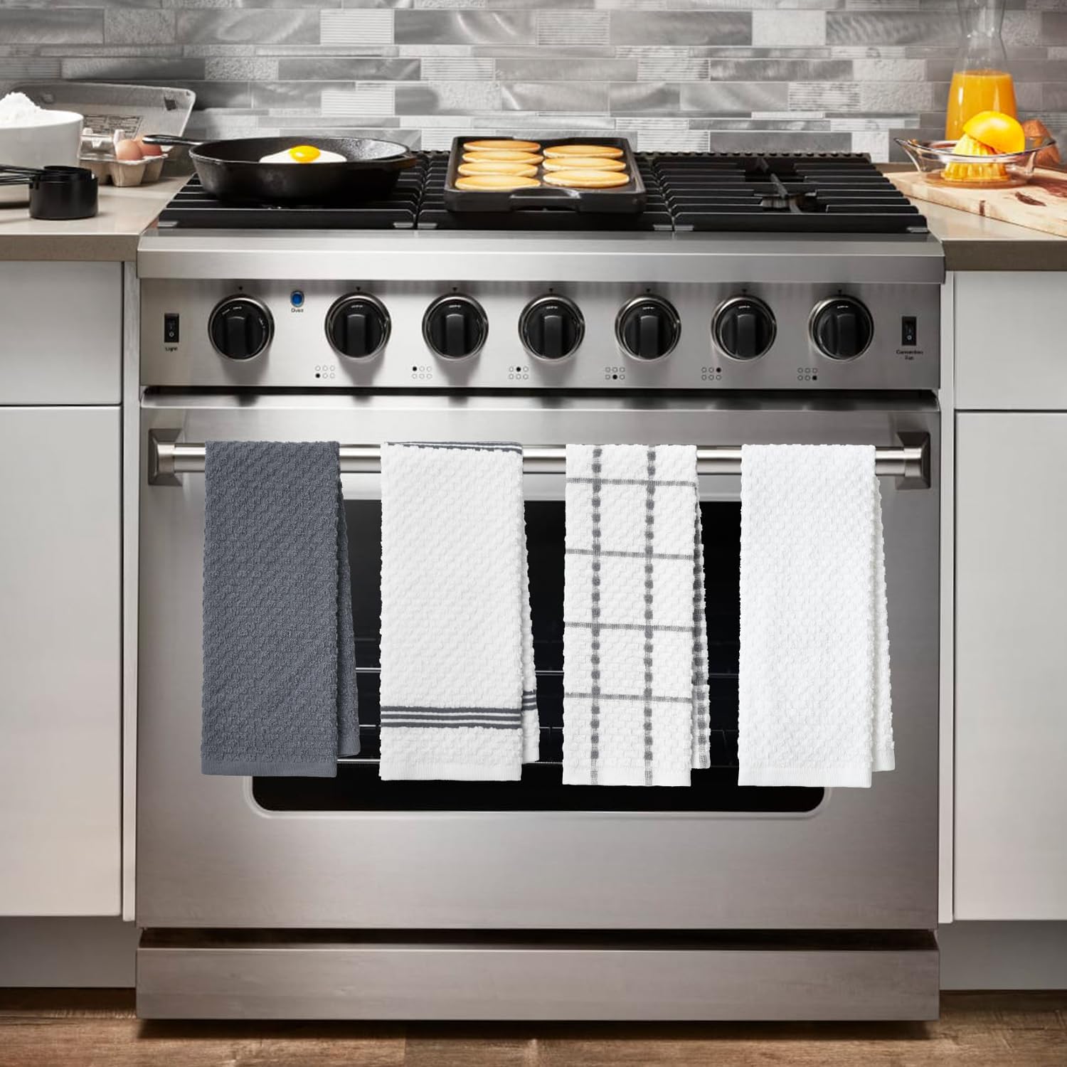- VALUE PACK: Collection includes 4 cotton kitchen towels available in a variety of colors to coordinate with any kitchen dรฉcor. Measures 15 in x 25 in.