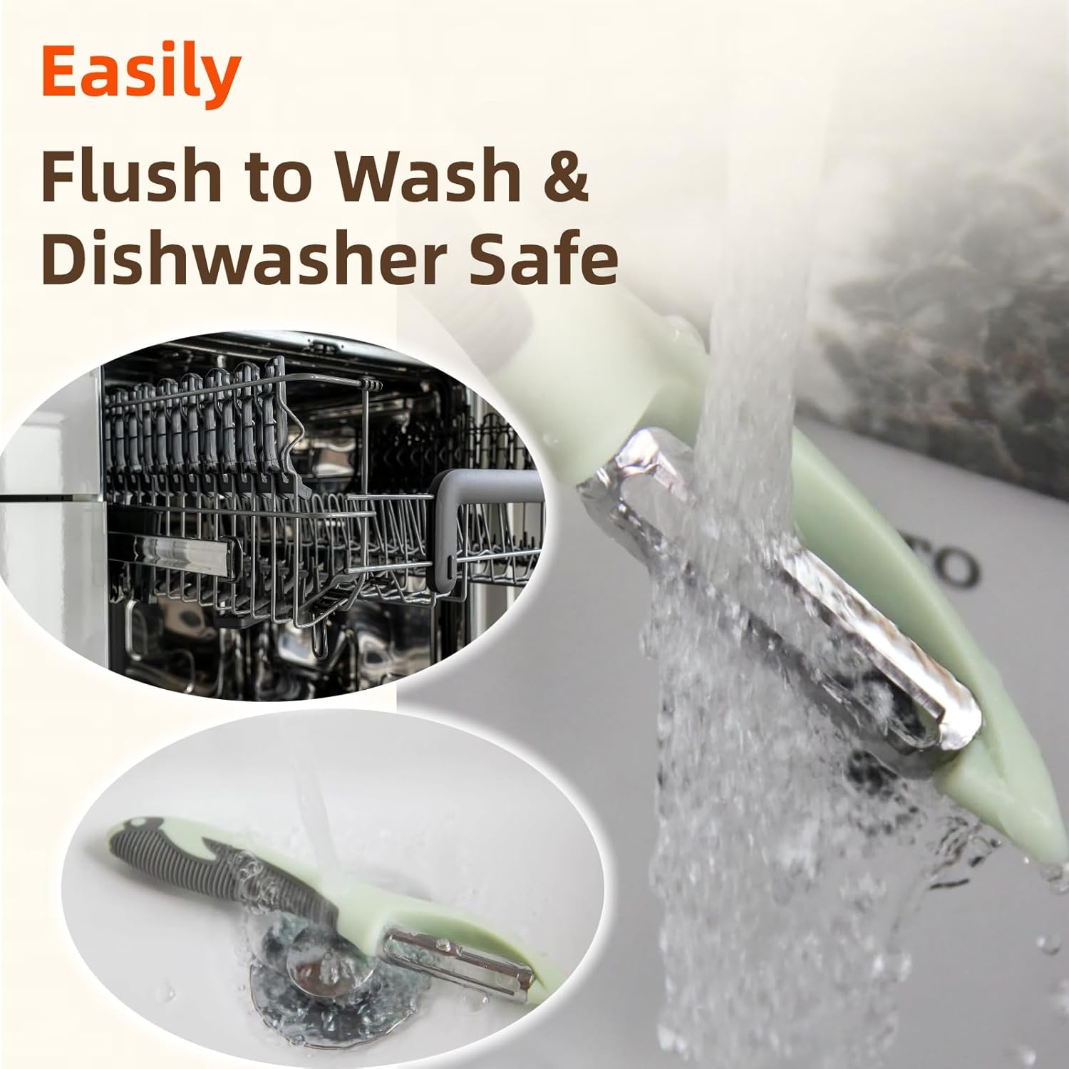 - 【Cushy Peeling】: The sharp, stainless steel blade effortlessly removes skin without damaging the underlying fruits or vegetables, preserving maximum flavor and nutrients of food. Just enjoy a "cushy" peeling experience with our peelers!