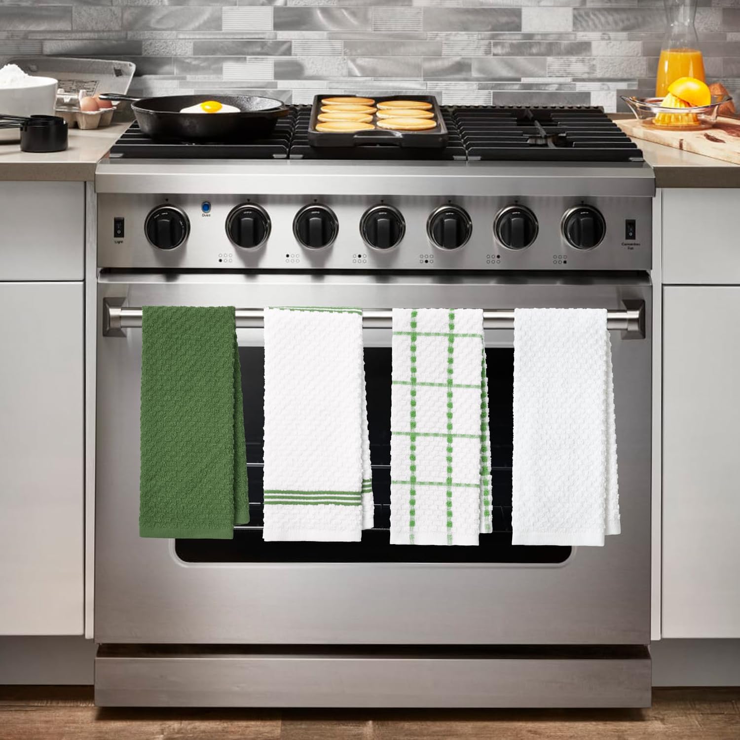 - VALUE PACK: Collection includes 4 cotton kitchen towels available in a variety of colors to coordinate with any kitchen dรฉcor. Measures 15 in x 25 in.