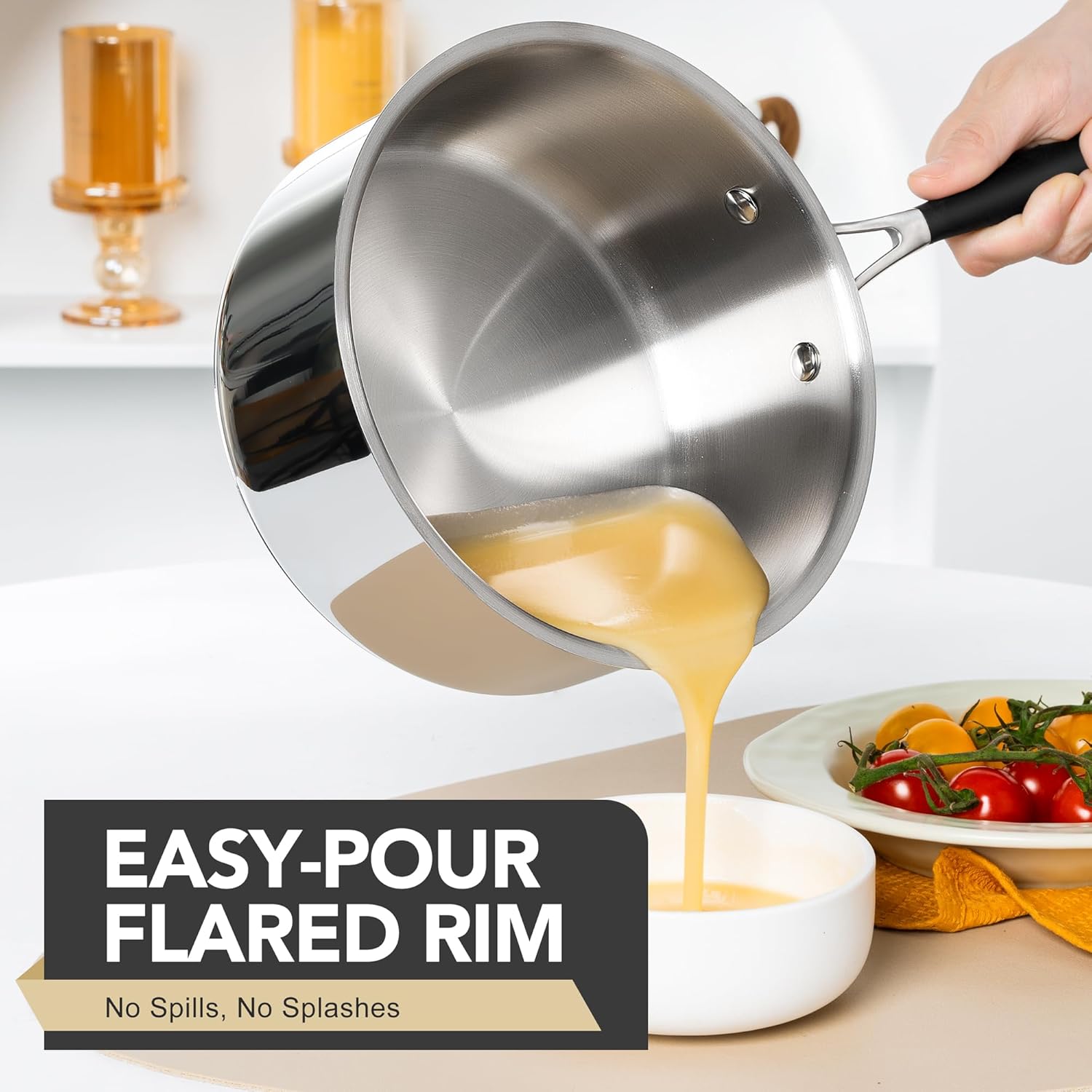 - Induction Compatible & Work on All Stovetops: The stainless steel saucepan set with excellent heat transfer, perfectly suited for all types of stoves - gas, electric and induction, etc., can meet most of the cooking needs, ideal for any kitche