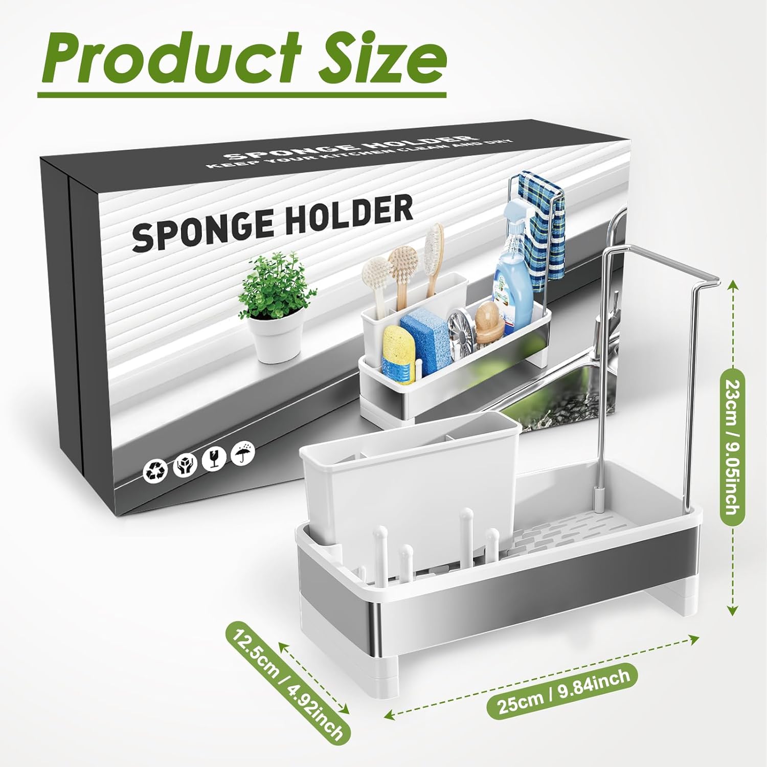- 【Removable Brush Holder & Dish Cloth Hanger】It not only serves as a sink sponge holder, but also comes with a removable brush holder that can accommodate brushes of different sizes. It also features a towel rack that allows your dish towels to hang and dry easily. Our sink caddy allows you to organize and store kitchen cleaning supplies more efficiently, saving space in your kitchen.