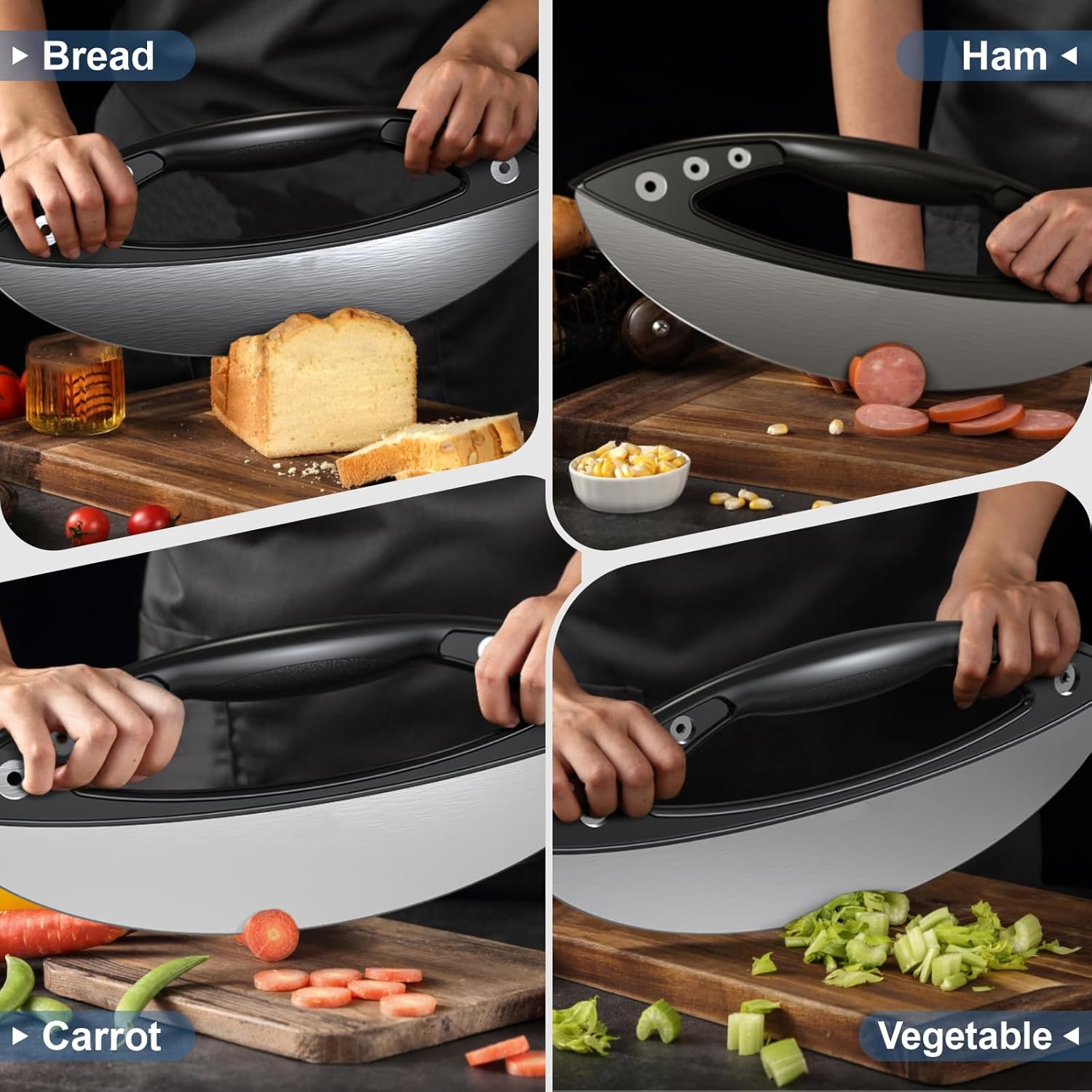 AILUROPODA 12-Inch Pizza Rocker Blade Cutter, Stainless Steel with Protective Cover, Silver