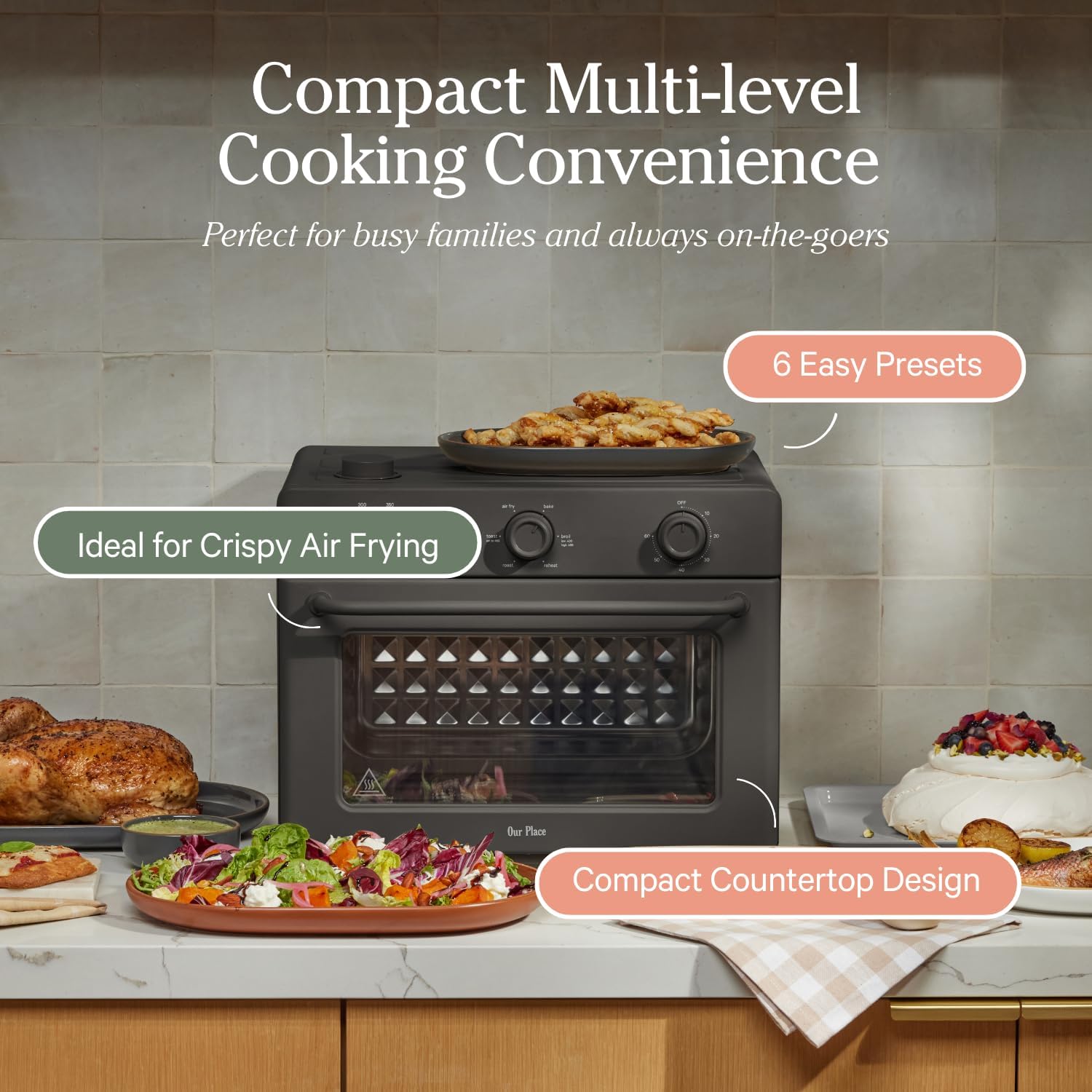 Our Place Large Wonder Oven | 6-In-1 Toxin-Free Air Fryer & Toaster with Steam Infusion | Family-Sized 32QT, 1700W Countertop Design | Includes Bake Tray, Fryer Basket, Large Racks | Char