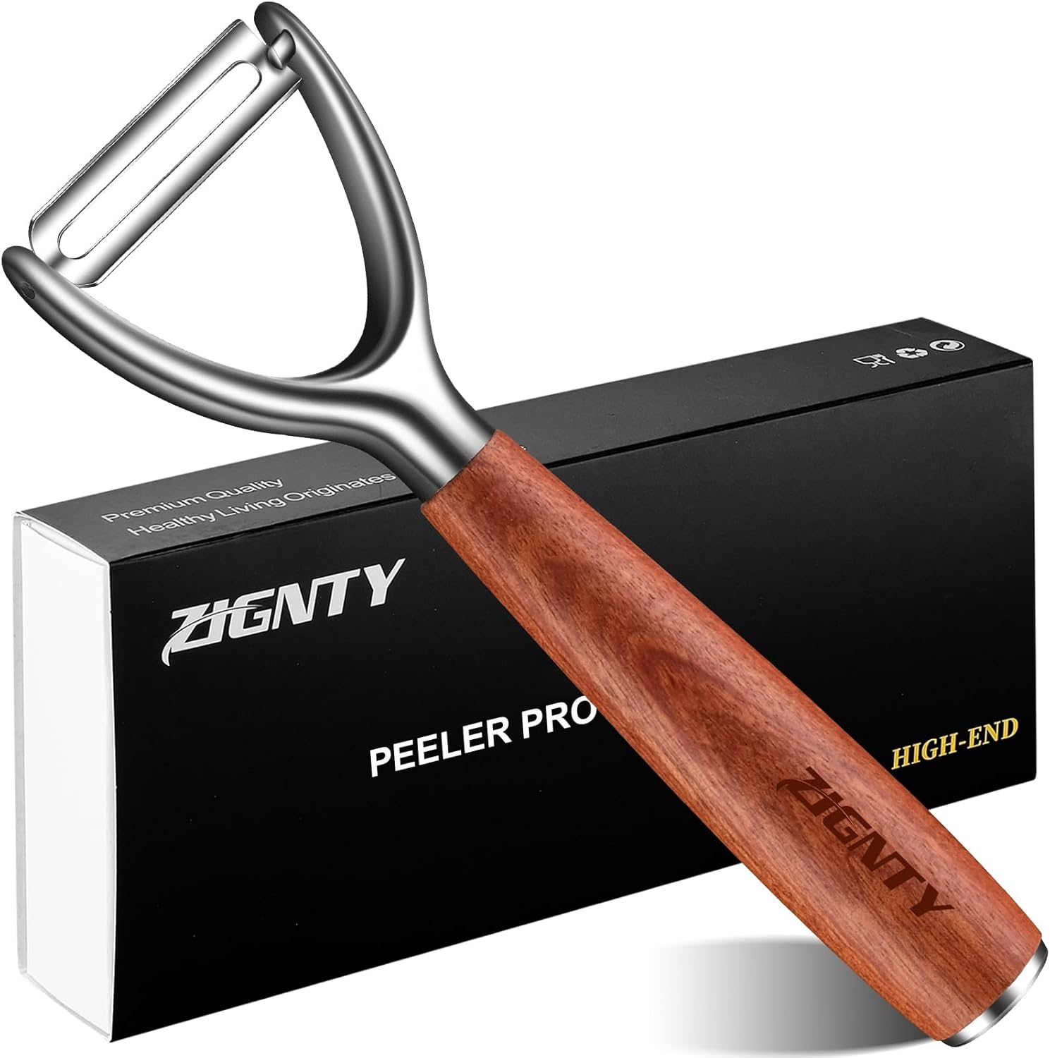 Premium Vegetable Peeler Stainless Steel,Ultra Sharp Potato Peelers for Kitchen, Swivel Blade Veggie Fruit Peeler, Carrot Cucumber Peeler with Ergonomic Wood Handle Y Peeler(5 Years Warranty)