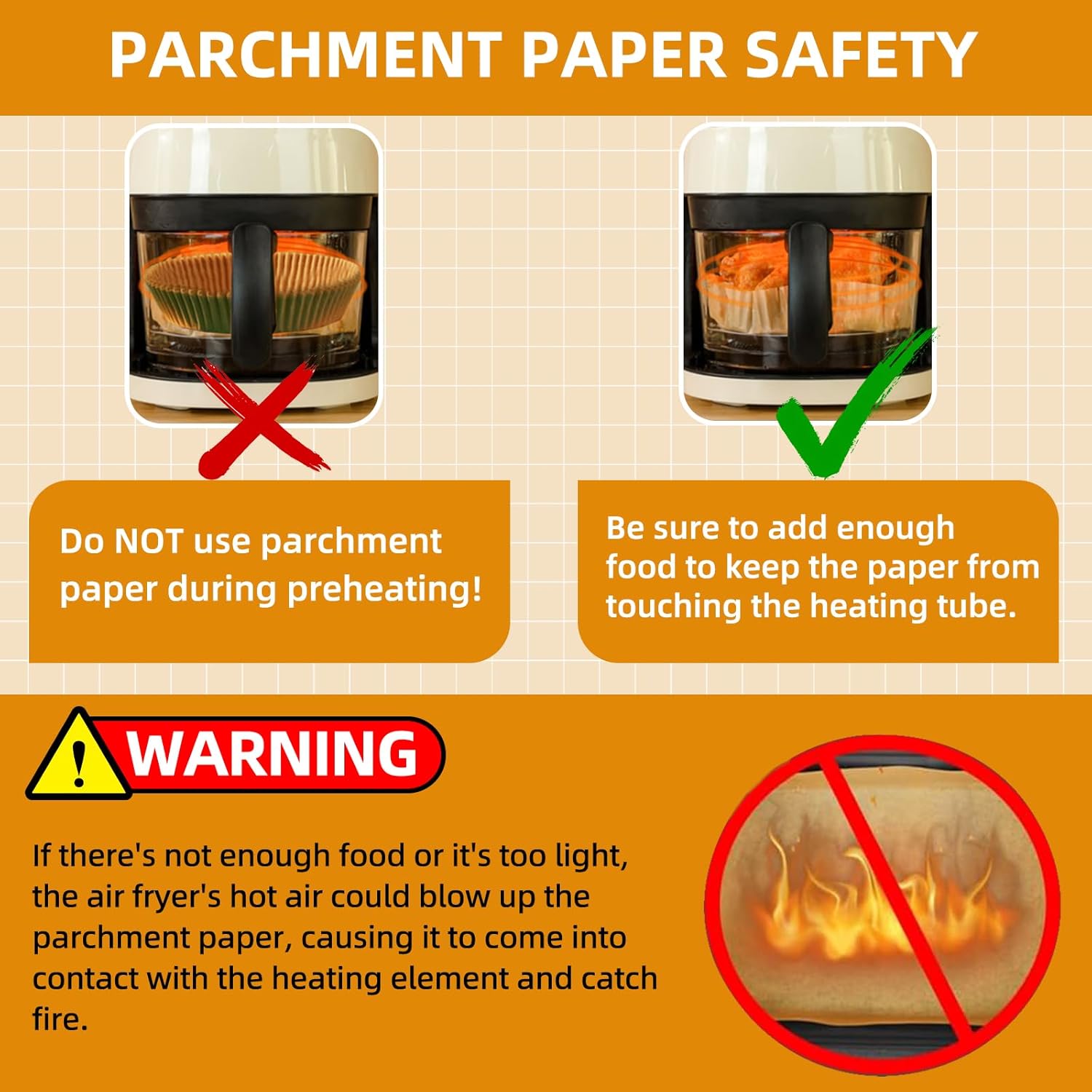 - Thickened Paper Liners - HONYAO thickened air fryer paper liners use 40gsm paper plus extra thick silicone oil coating, it keeps airfryer as clean as before use and prevents food residue and grease stains from remaining on air fryer drawers, reduces your cleaning time. HONYAO Air Fryer paper liner has better design and more wrinkles on the edges, it retains a better shape in hot wind in air fryers. Note: do not put baking paper in airfryer during preheating.