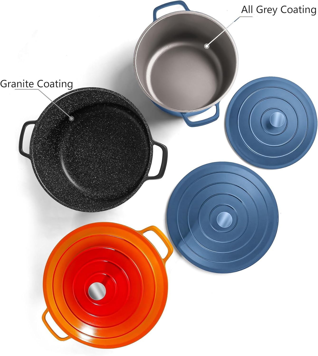 - Lightweight and Exquisite Design-Made of high-quality cast aluminum, with round shaped lid and looped handles, this Dutch oven pot is elegant looking, sturdy and light weight, a stainless-steel knob and the two handles have good grip. Non-toxic, PFOA & PTFE free material are adopted.