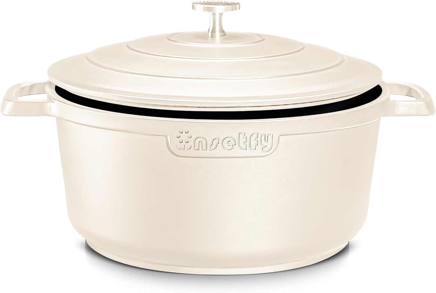 Large Dutch Oven Pot with Lid-7.5QT Cast Aluminum Oven Pot with Two Handles Lightweight for Bread Baking Braising and Roasting(Beige)