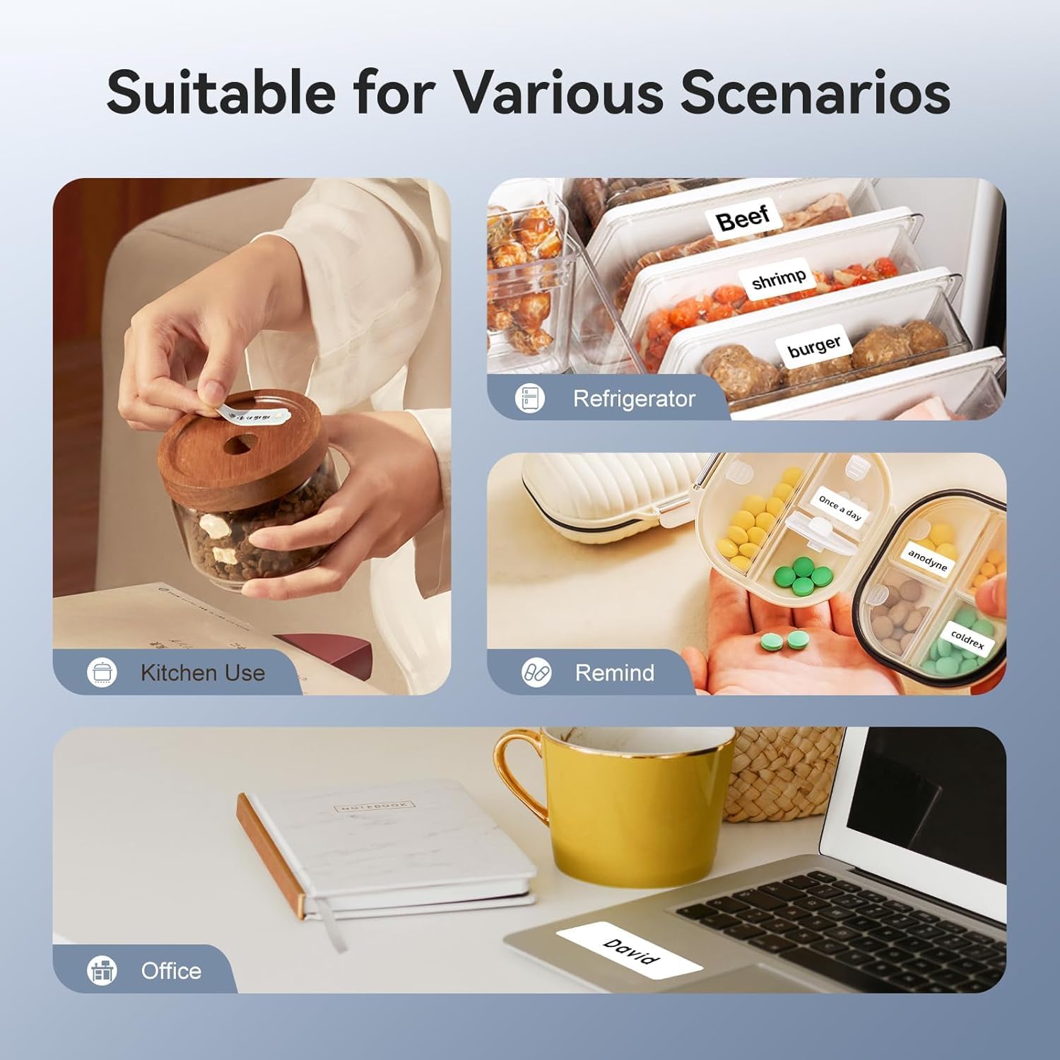 - 【Wide Application】- The label maker machine with tapes is used widely in organizing home/small business supplies/swap meets/garage/yard sales, school stuffs,and office. NIIMBOT D11 label maker is also a nice choice for kids, friends, girlfriends and mothers as a present for birthday,anniversary, housewarming, wedding, back to school, Thanksgiving and Christmas