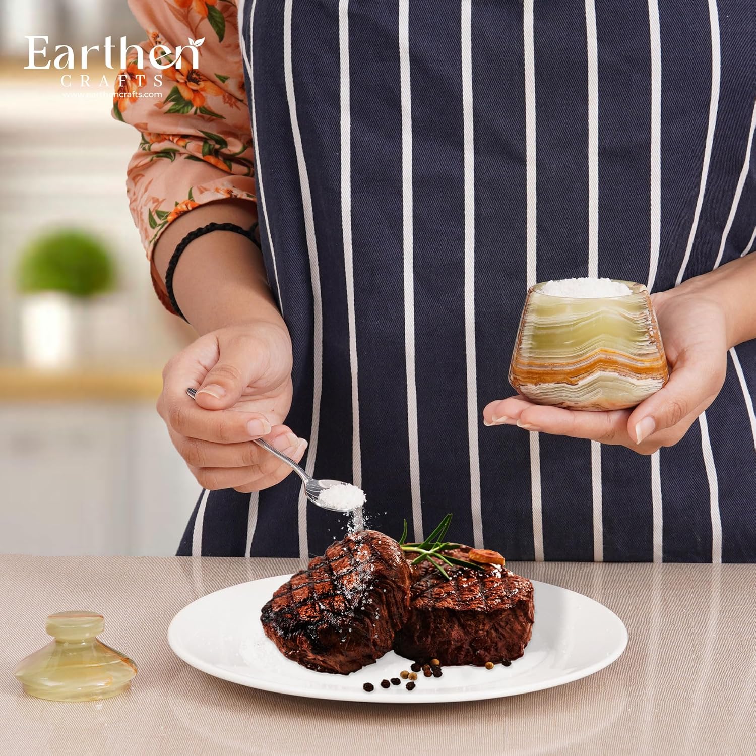 - What Is Included: 1 x Premium Marble Salt Cellar with Lid and Spoon. Comes along with Earthen Crafts branded secure packaging.