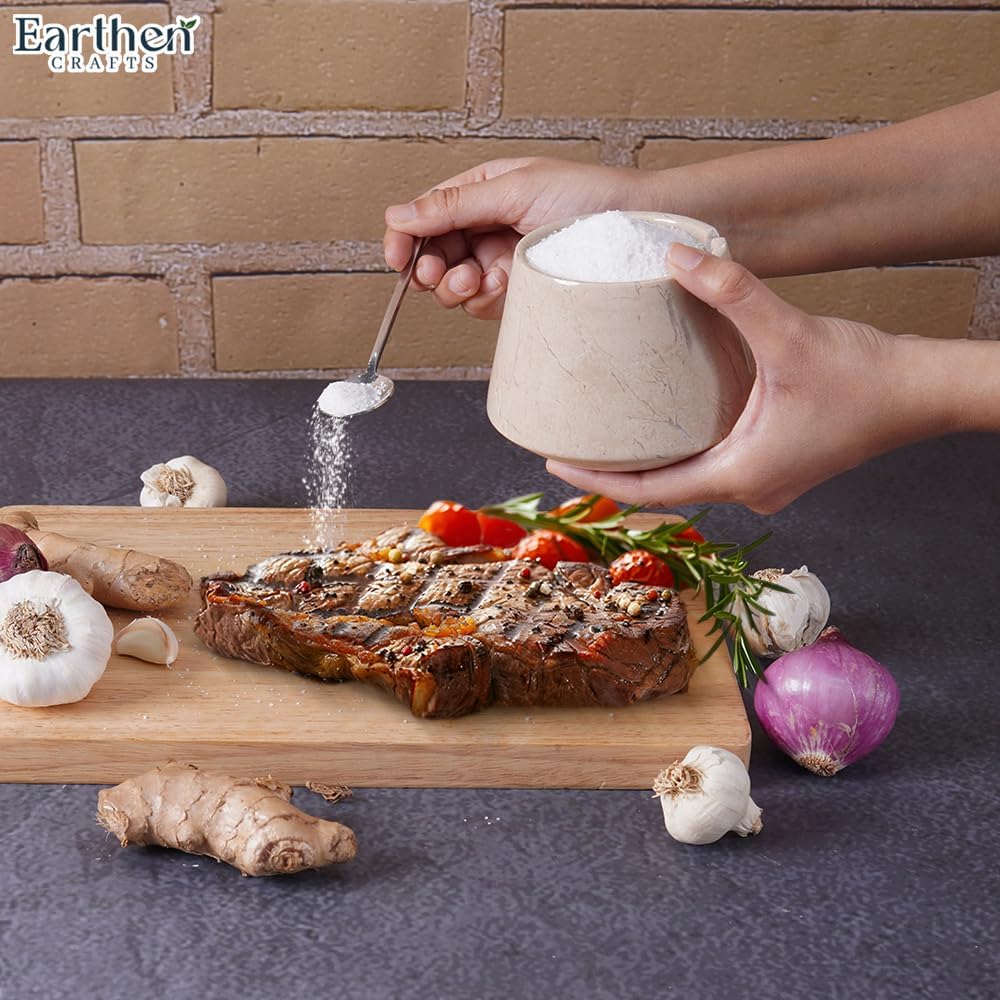 - What's In It: 1 x Marble Salt Cellar with lid and spoon. Comes along with Earthen Crafts branded, secure and fragile packaging.