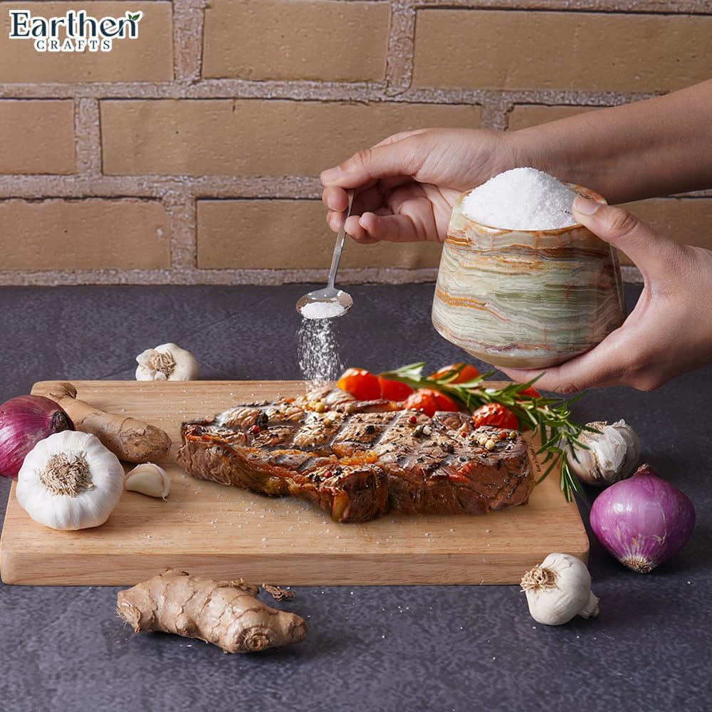 - What's In It: 1 x Tumbler Salt Cellar with Lid and Spoon. Comes along with Earthen Crafts branded secure packaging.
