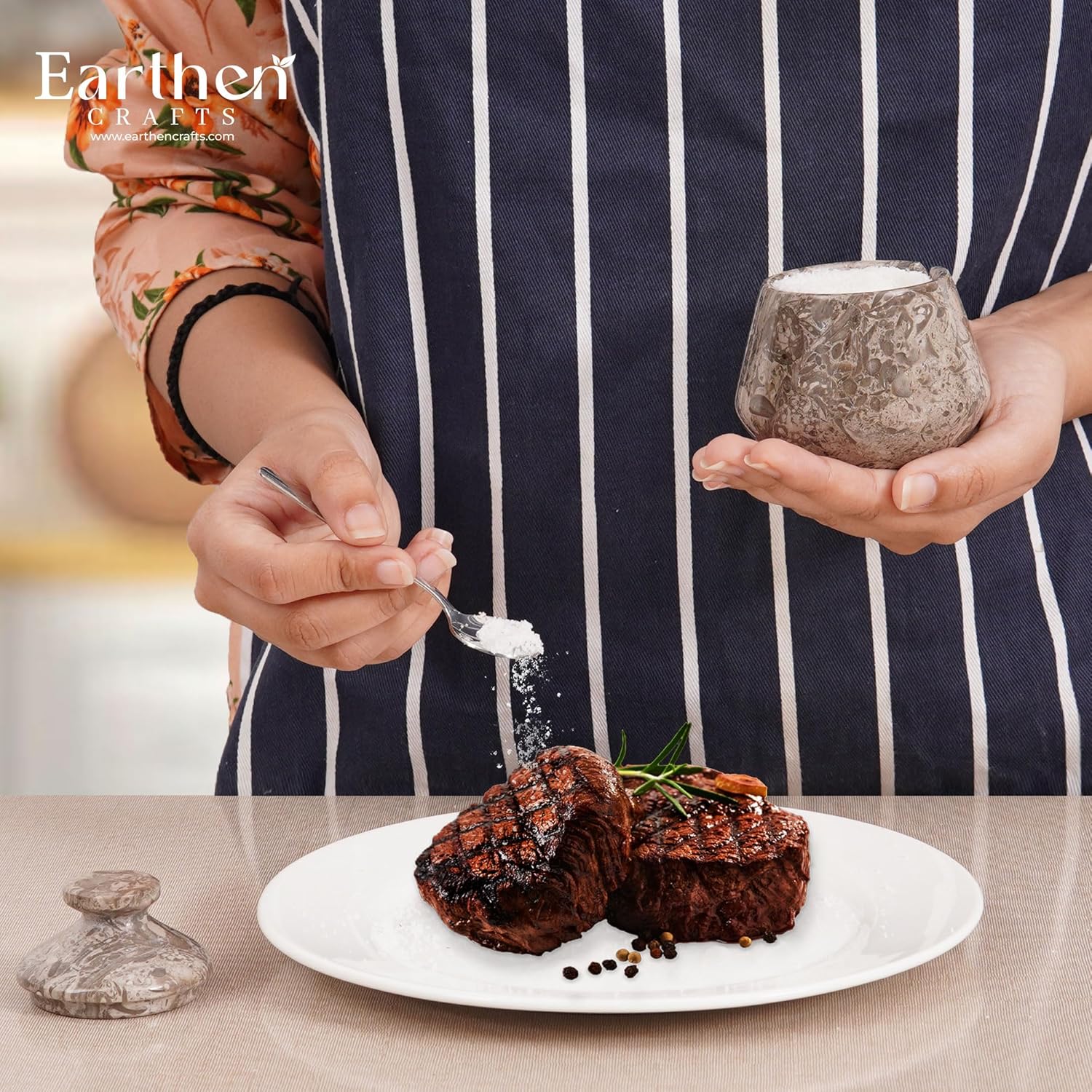 - What Is Included: 1 x Premium Marble Salt Cellar with Lid and Spoon. Comes along with Earthen Crafts branded secure packaging.