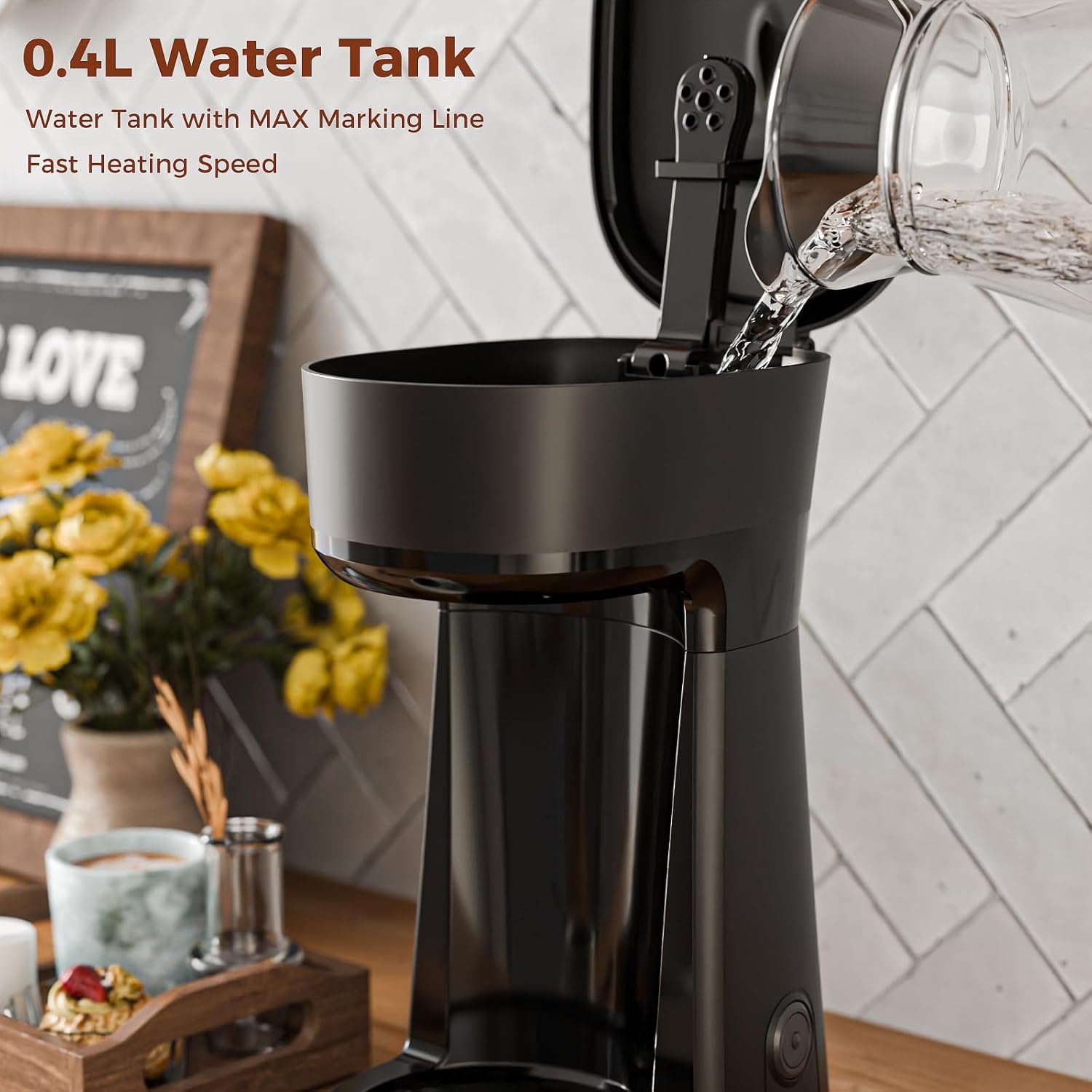 Single Serve Drip Coffee Maker with Travel Mug, One-Touch Operation, Fast Brew, Compact Small Coffee Maker with Removable Filter,Ideal for Home, Office, or On the Go(Black)