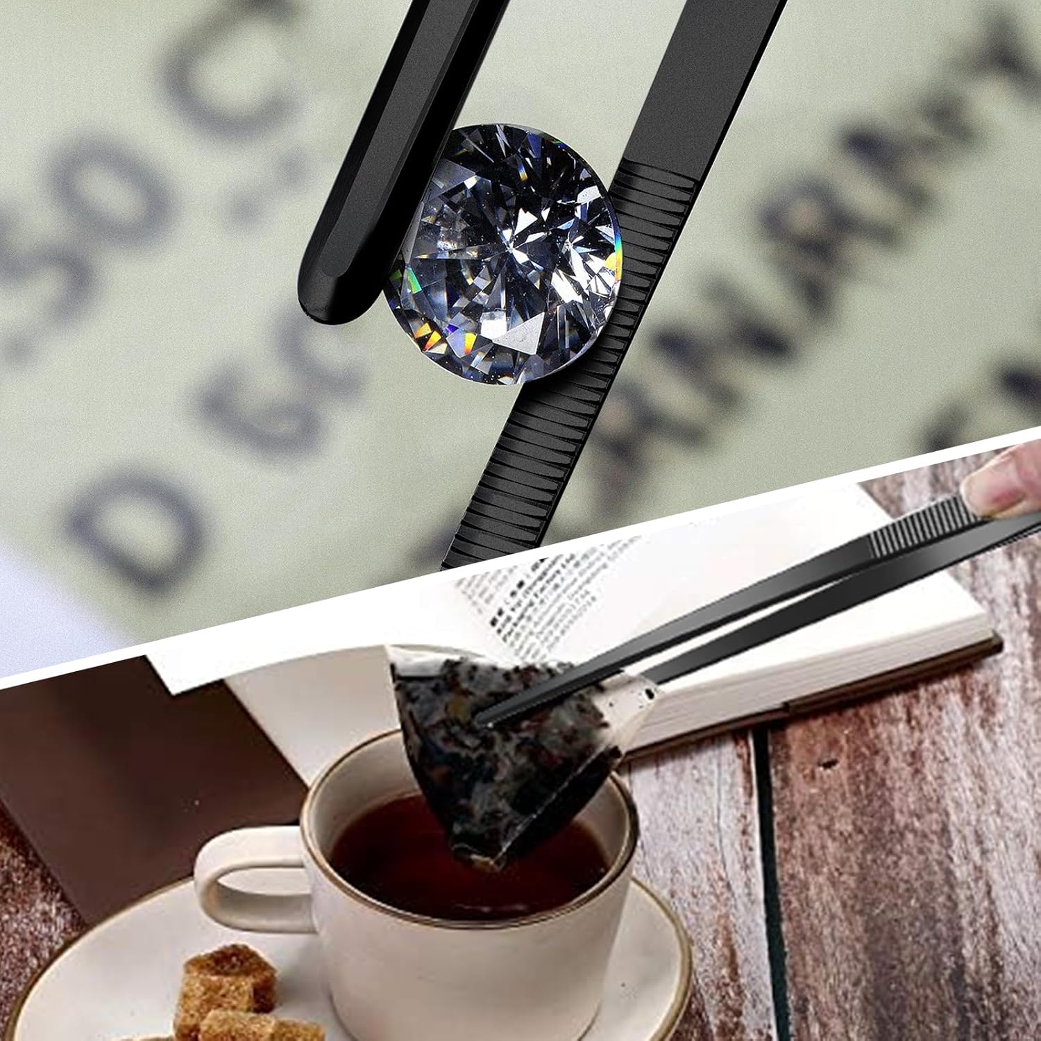- Easy to Grip and Clamp Fine: long tweezers have serrated tips will help grip stuff securely without ever slipping off; Use a comfortable handle, tweezers to protect your movements