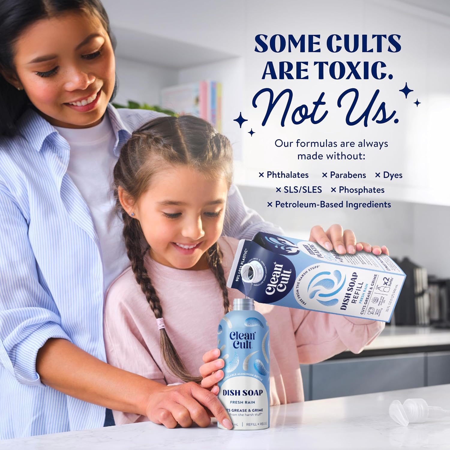 Cleancult Dish Soap Liquid Refill (32oz, 1 Pack) - Plant Based Cleaning Power - Dish Soap that Cuts Grease & Grime - Free of Harsh Chemicals - Uses 90% Less Plastic - Fresh Rain