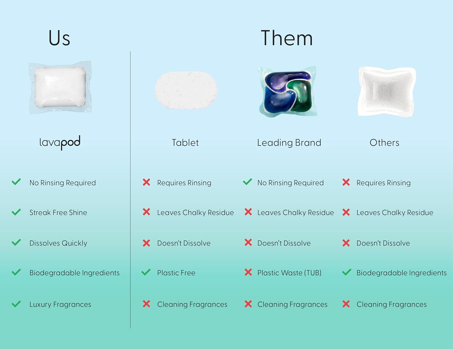 Natural Dishwasher Pods | Plant-Based Enzyme Dishwasher Detergent, Lemongrass & Wild Mint, Eco-Friendly, Tough on Grease & Food Residue, 60 Count