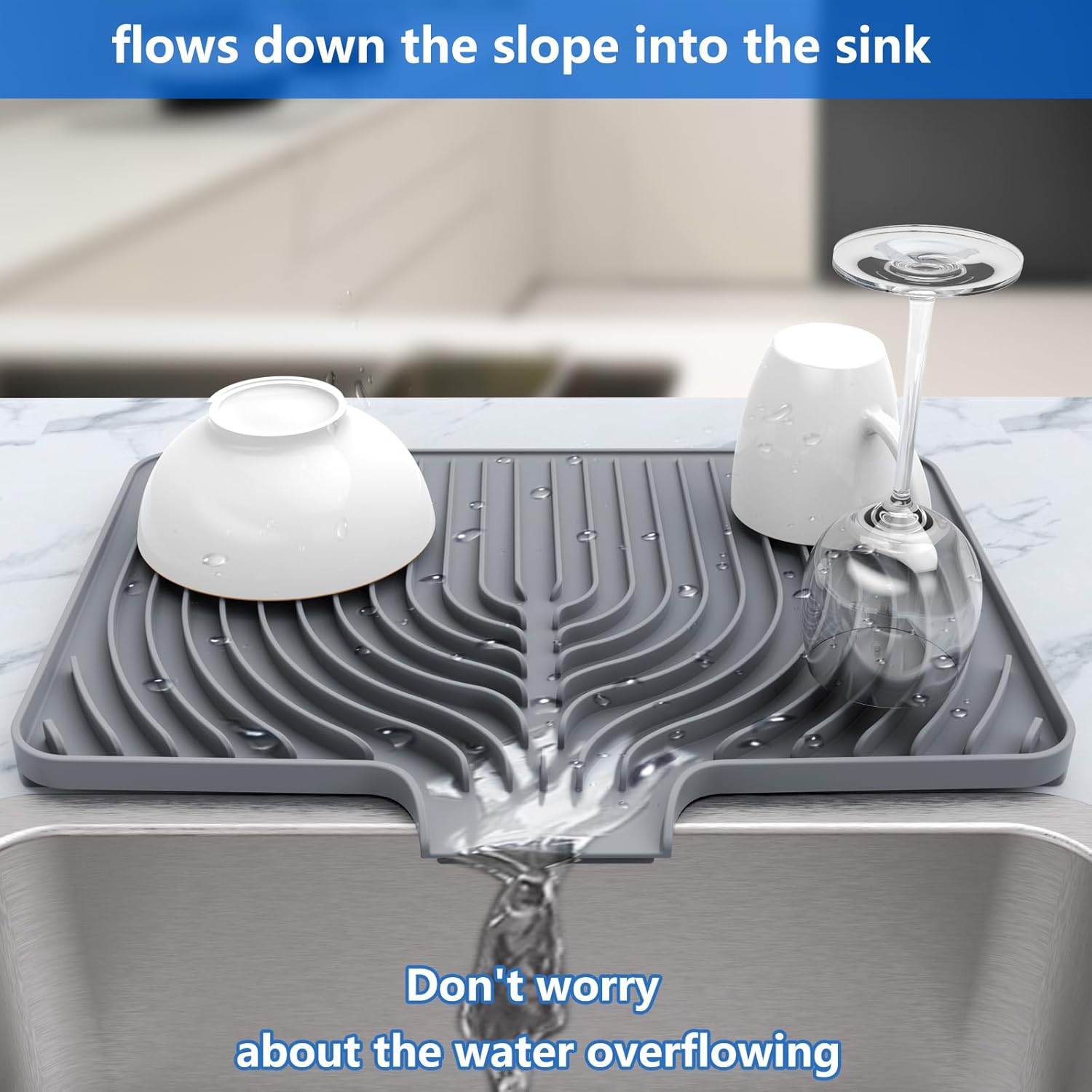 - BIGGER AND THICKER: The larger size is more friendly to larger dishes and also makes it look better on your kitchen countertop.This kitchen counter Drying matt also is designed to be thicker than similar dry mats and is made of reinforced silicone rubber for better support, so it can better protect your dishes.