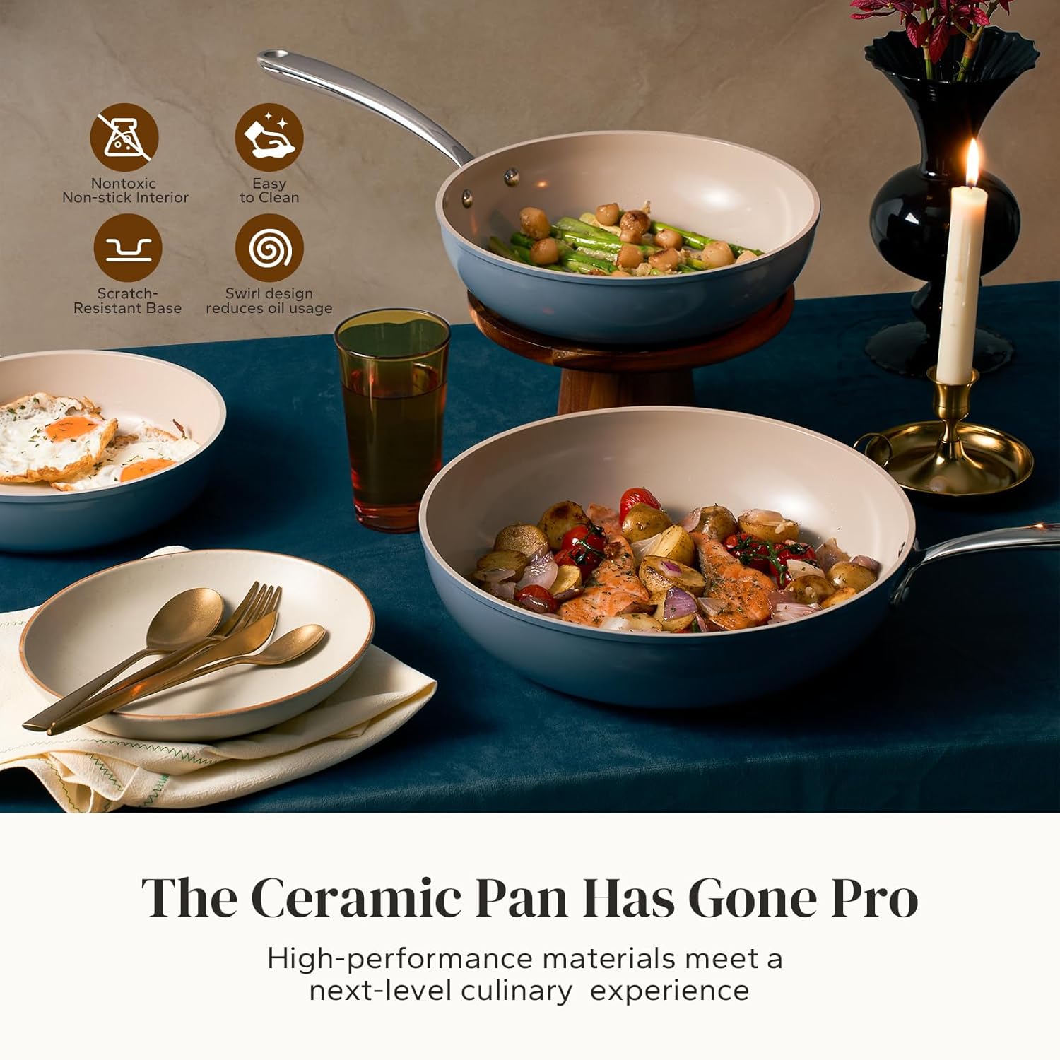 - NON-TOXIC & FOOD-SAFE COATING: PFAS-free ceramic coating made with food-grade materials, rigorously tested to exclude PFOA, PTFE, lead, and cadmium. Safe for daily family cooking