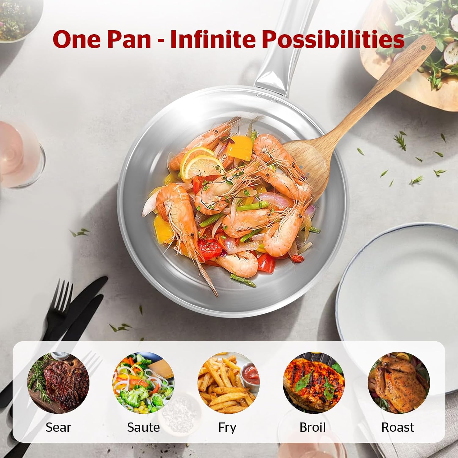 Sunhouse 18/10 9 Inch Stainless Steel Frying Pan, Whole-Clad No Coatings Skillet with Stay-cool Handle for Cooking, Durable & Oven Safe to 500°F, Dishwasher Safe, Compatible with All Cooktops