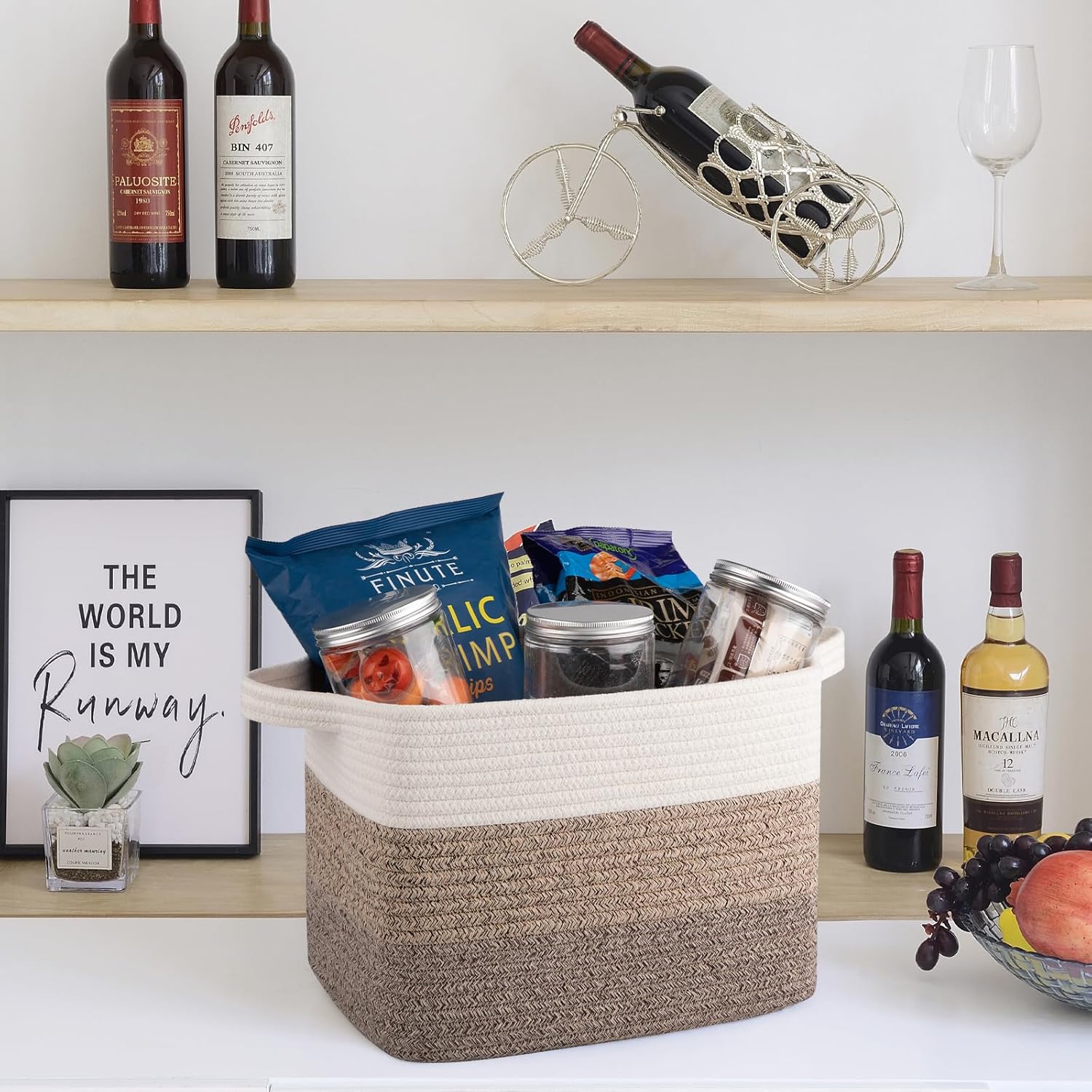 - Unique Design:Small rope basket with foldable design and separate built-In handles for easy portability and store. The handle is made of 3-heeled braided rope, comfortable to the touch, even with heavy items your hand is not restrained.In addition the storage basket available in different unique colors. Provide a nice fine Nordic touch to any room of your house