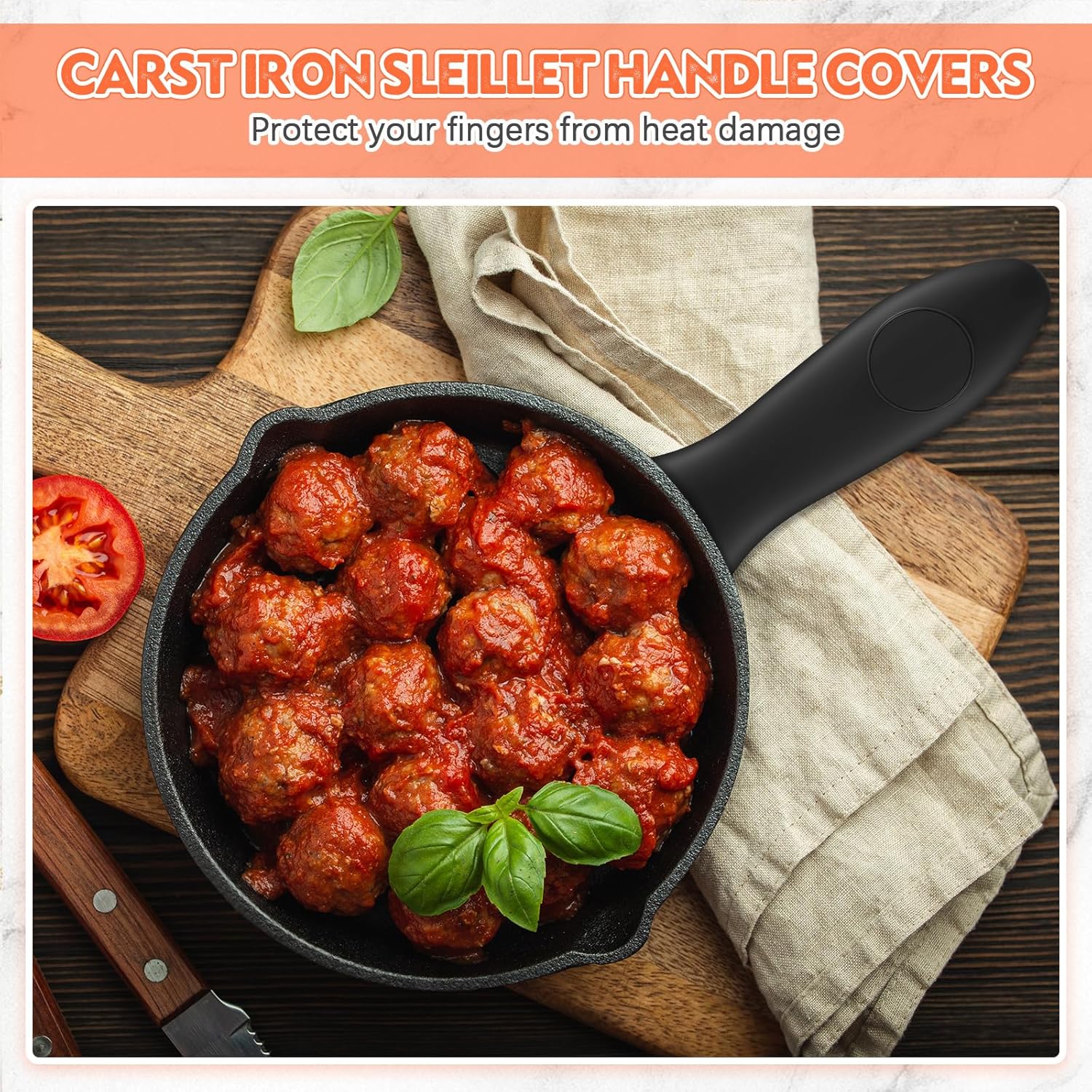 - Easy to Clean and Store: the cast iron skillet handle cover adopts a practical hanging hole structure, which can be hung on a hook without taking up too much space; The handle cover has a smooth surface and is easy to clean, which can effectively avoid food residues